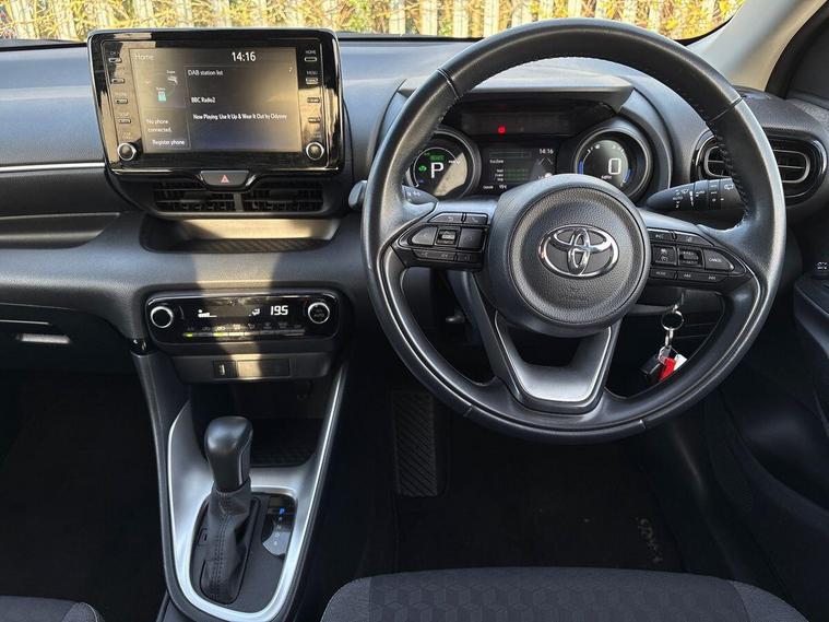 This 2021 Toyota Yaris VVT-h Design is a rare find, boasting a single owner from new and still covered by a 12 month warranty for your peace of mind. As a Toyota manufacturer approved vehicle, this 1.5L petrol hybrid is a testament to quality and reliability. The Design trim level ensures you benefit from a host of modern conveniences, including automatic headlights with LED technology for enhanced visibility and automatic air conditioning to keep you comfortable in all conditions.Experience seamless connectivity with smartphone integration, featuring both Apple CarPlay and Android Auto, allowing you to access your favourite apps and navigation with ease. Toyota Safety Sense 2 is also included, offering advanced driver assistance features such as adaptive cruise control to make your journeys more relaxed and secure. With an impressive fuel economy of 69 mpg and low CO2 emissions, this Yaris represents excellent value, demonstrating its efficiency and environmental consideration compared to other vehicles in its class..