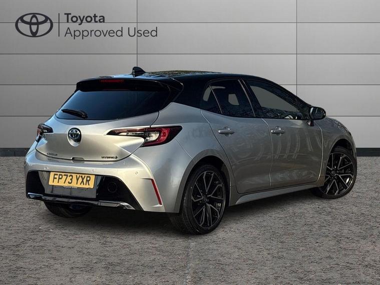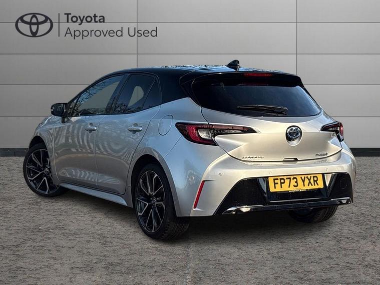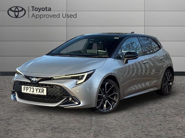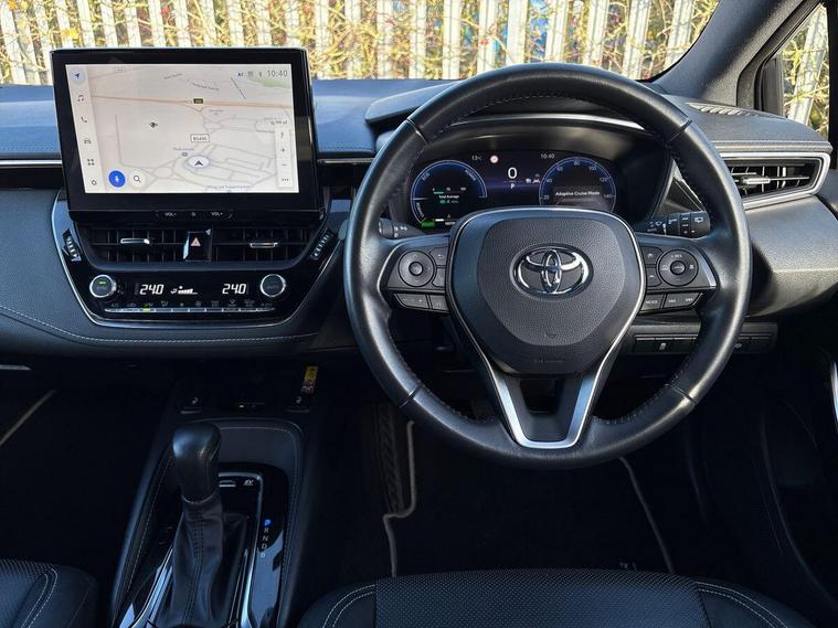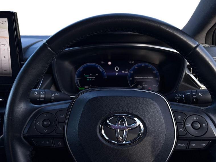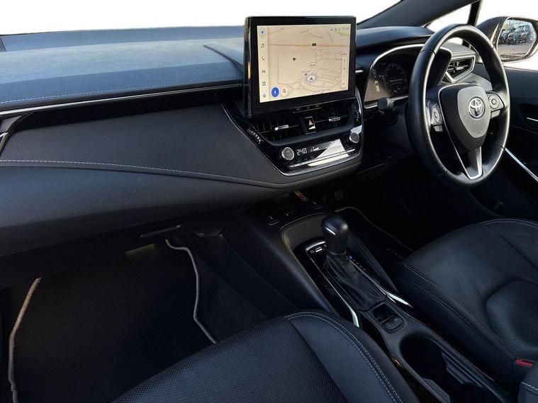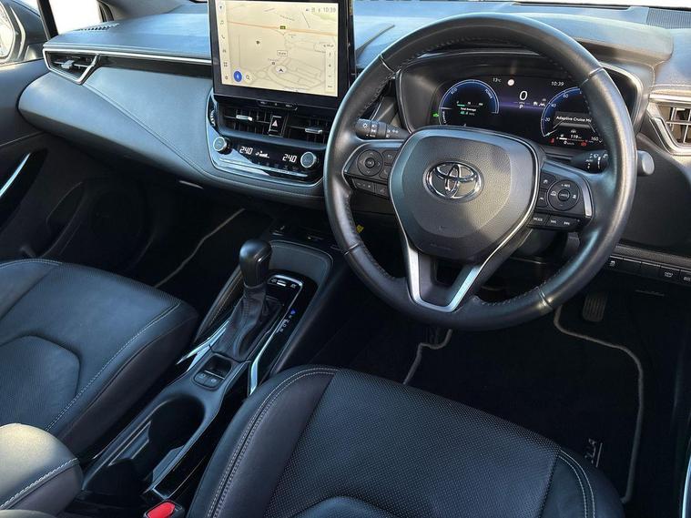 With a full service history and only one owner from new, this 2023 Toyota Corolla VVT-h Excel presents a superb ownership proposition. This Euro 6 compliant model boasts a 1.8L Petrol Hybrid engine, offering an impressive fuel economy of 60 mpg. It comes with the remainder of its manufacturer warranty, valid for 13 months, and its MOT is not due until December 2026, ensuring peace of mind. Having been serviced recently at 9991 miles on 21 January 2025, and being Toyota manufacturer approved, this Corolla has been meticulously maintained.The Excel trim level enhances your driving experience with notable features such as automatic LED headlights, a reversing camera for easier parking, and smartphone integration with both Apple CarPlay and Android Auto. Safety is also a priority, with Blind Spot Monitoring and Safe Exit Assist included. This Corolla is in a low insurance group, and its acceleration from 0-62mph in just 9.1 seconds demonstrates its responsive performance. Furthermore, you will appreciate the large boot space, making it a practical choice for everyday use and longer journeys, indicating its superiority over many similar vehicles..