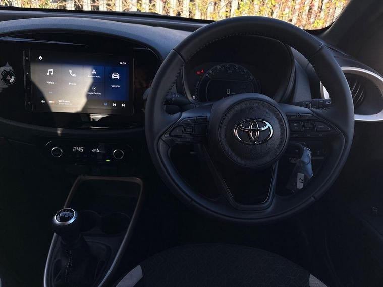 This 2025 Toyota Aygo X VVT-i Edge is presented in exceptional condition with an incredibly low mileage of just 5 miles, practically new for its registration year. As a Toyota manufacturer approved vehicle, it comes with the reassurance of a 35 month warranty, offering peace of mind for its sole owner. This stylish Edge trim model is powered by an efficient 1.0L Petrol Engine, meeting Euro 6 emission standards.The Aygo X VVT-i Edge is designed for modern convenience, featuring seamless Smartphone Integration with both Apple CarPlay and Android Auto, allowing you to connect your devices effortlessly. Auto headlights adjust automatically to lighting conditions, while the reversing camera aids parking. Stay connected on the go with Bluetooth connectivity, and manage your journey with the Adaptive Cruise Control switch conveniently located on the steering wheel. This vehicle stands out with its impressive fuel economy of 59 mpg, a low insurance group, and low CO2 emissions, making it a more economical and environmentally conscious choice compared to many other vehicles in its class..