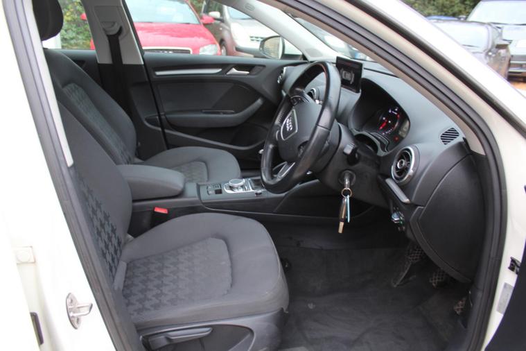 SAME LADY DRIVER FROM NEW - ORIGINALLY HER COMPANY CAR THEN PURCHASED -OPENING SUN ROOF - HEATED SEATS - DAB RADIO - SATNAV - 6 SPEED MANUAL - GREAT DRIVE - This Audi A3 TDI SE from 2015 boasts an impressive provenance, This well maintained example features a 2.0 litre diesel engine, meeting Euro 6 emissions standards, and is presented in the SE trim. You will find model and engine technology badges at the rear, along with electric range control for the headlights. Inside, enjoy the comfort of air conditioning and the convenience of a Bluetooth interface for mobile telephone preparation.The performance of this A3 is noteworthy, achieving 0 to 62 miles per hour in just 8.6 seconds, demonstrating its responsive acceleration. This figure indicates a more dynamic driving experience compared to many vehicles in its class. Furthermore, the generous boot space offers excellent practicality for everyday use and longer journeys, making this Audi A3 TDI SE a well rounded and capable choice..