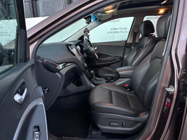 FINANCE & PCP AVAILABLE, COMPLEMENTARY WARRANTY INCLUDED, GOOD CONDITION, WE TAKE PART EXCHANGE! Hyundai Santa Fe 2.2 CRDi Premium SE Auto 4WD Euro 5 5dr (7 seat). HPI Clear, Service History, 11 Months MOT, 3 Owners, 2 Keys, Panoramic Glass Sunroof Sliding/Tilting, Keyless Entry, Keyless Start, Cruise Control, Speed Limiter Function, Reverse Camera, Parking Sensors, Smart Parking Assist System, Lane Departure Warning System, Manual Shifting Function Via Gear Selector, Four Wheel Drive, Differential Locking System, Power Assisted Steering, Suspension - Self Levelling, Flex Steer Modes Comfort/Normal/Sport, Active ECO Mode, Hill-Start Assist Control, Downhill Brake Control, Traction Control, Trailer Stability Assist, Vehicle Stability Management, Electronic Stability Programme, Electronic Brake Force Distribution, Brake Assist System, Anti-Lock Brake System, Electric Parking Brake With Autohold, Headlights - Automatic, Headlights - Xenon, Daytime Running Lights - LED, Front Fog Lights, Front Static Cornering Lights, Rain Sensing Front Wipers, Electric Windows, Electric Mirrors, Powerfolding Mirrors, Electric Front Seats With Drivers Memory Seat, Front Heated/Cooling Front Seats, Heated Rear Seats, Heated Steering Wheel, Automatic Dual Zone Climate Control, Air Conditioning, Front And Rear Screen Demisters, Colour Touchscreen Media Interface, Navigation, Traffic Information, Drivers Information Cluster, Bluetooth, Radio, AUX, USB, CD, Telephone Connection, Voice Control, Multifunctional Steering Wheel, Full Leather Seats Finished In Black, SANTAFE Design Interior Badging, SANTAFE Design Door Sills, 2nd And 3rd Row Folding Seats, Exterior Badging, Roof Rails, Privacy Glass, 19inch Alloy Wheels.ALL VEHICLES ARE FULLY INSPECTED PRIOR TO SALE. Feel free to enquire about our competitive Financial packages. We can assist you in securing finance for your New car with ease- regardless of your credit status/history. We include a COMPLEMENTARY WARRANTY on all our vehicles. Be our next happy customer today! dealer's website