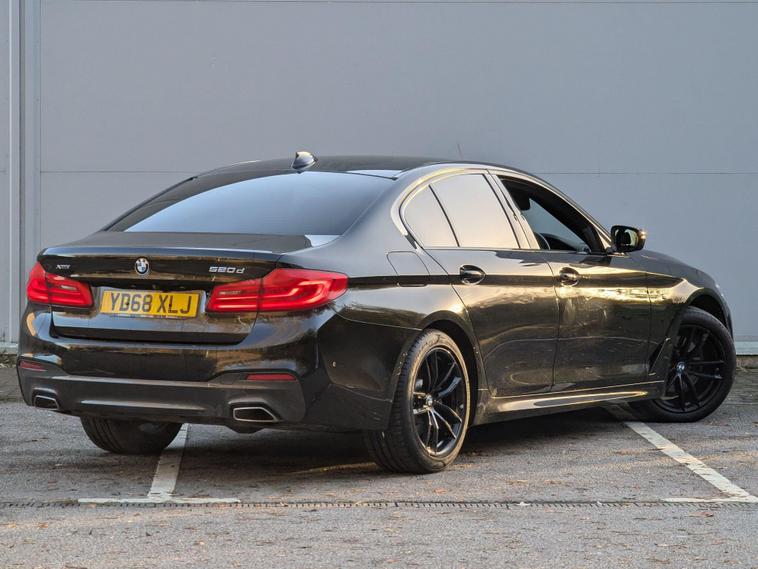 This 2018 BMW 5 Series 520d M Sport is a superb example of German engineering, boasting a powerful 2.0L diesel engine and a sophisticated Four Wheel Drive system for confident handling in all conditions. As a Euro 6 compliant vehicle, it offers efficient performance, and the M Sport trim ensures a dynamic driving experience. Notable features include the distinctive xDrive designation on the tailgate, a reversing assist camera complemented by front and rear Park Distance Control for effortless manoeuvring, and automatic rain sensors with headlight activation. Inside, you'll appreciate the automatic air conditioning with climate control, ensuring a comfortable cabin environment no matter the weather.The 520d M Sport excels with its impressive acceleration, reaching 0-62mph in just 7.3 seconds, demonstrating its responsive power. This performance, combined with its large boot space, makes it a practical yet exhilarating choice for both daily commutes and longer journeys. The inclusion of advanced parking assistance systems and automatic lighting further enhances its usability, setting it apart from other vehicles in its class by offering a more convenient and secure driving experience..