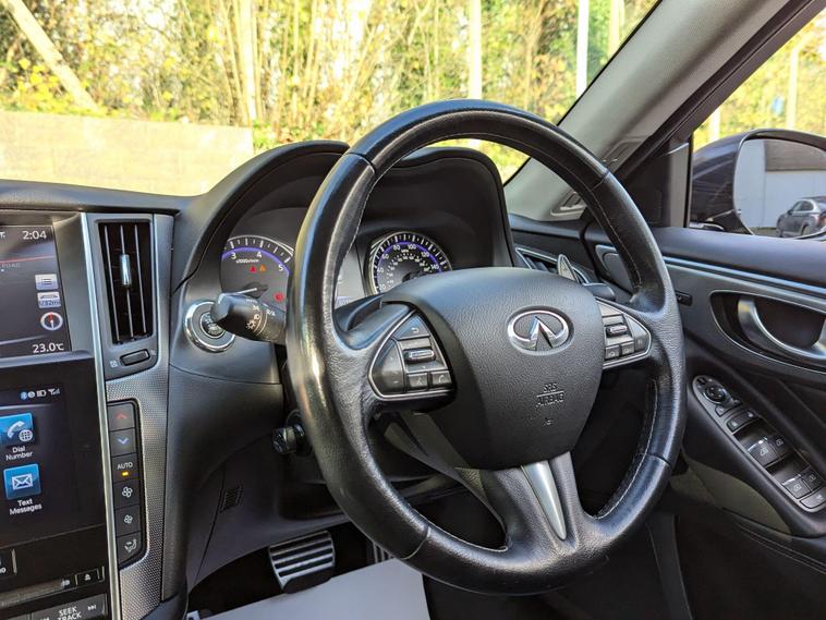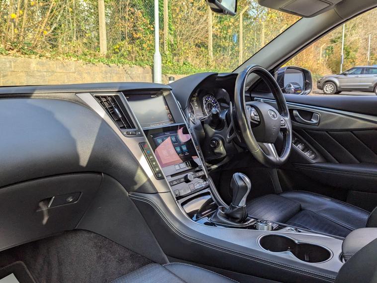 This 2016 Infiniti Q50 d Sport is presented with a full service history, offering peace of mind alongside its impressive Euro 6 compliant 2.2L diesel engine. As a Sport trim, this vehicle boasts a range of desirable features including LED headlights for enhanced visibility, front seats with memory function for personalised comfort, and stylish aluminium pedals. The leather steering wheel adds a touch of premium feel to the driving experience, complemented by attraction lighting for a welcoming touch.With an outstanding fuel economy of 61 mpg, this Infiniti Q50 d Sport demonstrates excellent efficiency compared to similar vehicles. Its low insurance group rating further contributes to lower running costs, making it an attractive option for many drivers. A 3 month warranty is included, and the vehicle will be supplied with 12 months MOT, ensuring it is ready for the road..