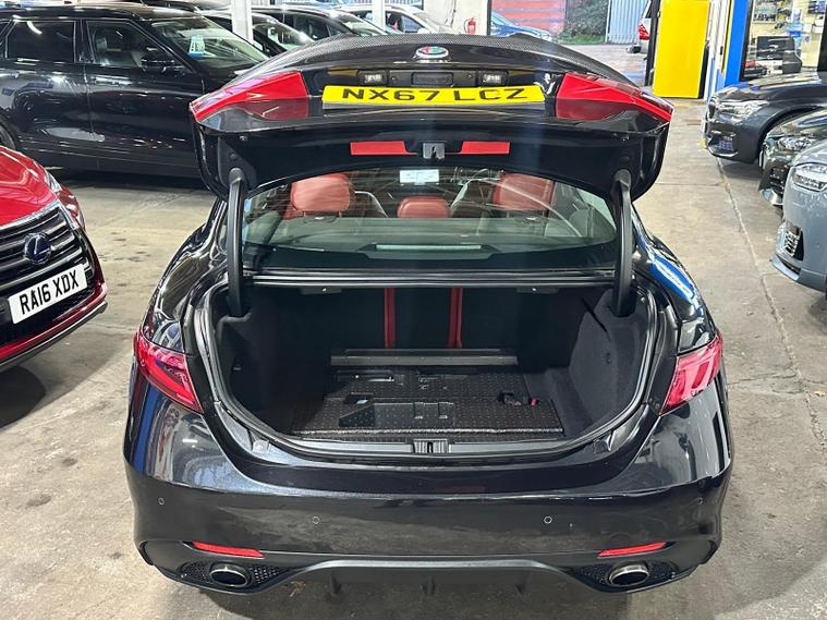 This 2017 Alfa Romeo Giulia T Veloce boasts a clear vehicle history, offering you peace of mind. This stylish saloon features a 2.0 litre petrol engine and meets Euro 6 emissions standards. Inside, you'll find a Veloce interior pack with heated seats and a heated steering wheel, complemented by 6 way power adjustable front seats with memory function. For convenience and safety, it includes front and rear parking sensors with parking assistance, and Bi Xenon headlights with LED daytime running lights, which also benefit from automatic activation.Experience impressive performance with this Giulia, capable of accelerating from 0 to 62 miles per hour in just 5.7 seconds. This indicates a superior level of responsiveness compared to many other vehicles in its class. Furthermore, its fuel economy is noteworthy, achieving up to 46 miles per gallon, demonstrating its efficiency for everyday driving..