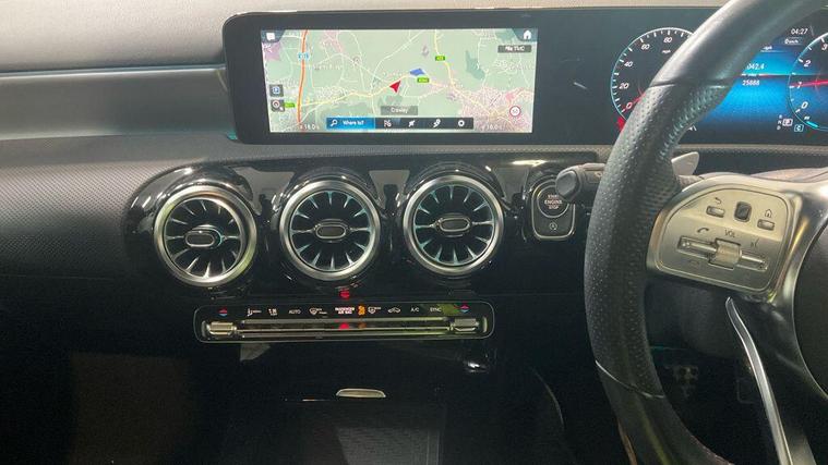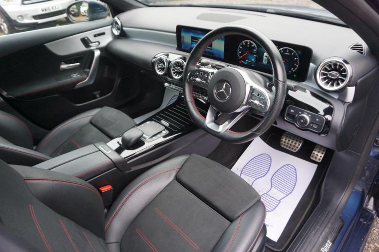 This 2021 Mercedes-Benz A Class A180 AMG Line (Premium Plus 2) boasts exceptionally low mileage for its age, having covered just 25800 miles. This Euro 6 compliant, 1.3 litre petrol model, presented in the sporty AMG Line trim, offers a refined driving experience. Notable features include a stunning Panoramic Glass Sunroof that opens up the cabin, and advanced MULTIBEAM LED Headlights with Adaptive Highbeam Assist Plus for superior visibility. Convenience is further enhanced by electrically adjustable front memory seats with lumbar support and the KEYLESS-GO system for effortless locking and unlocking.The A Class is designed for both performance and practicality, with a brisk 0-62mph acceleration time of 8.8 seconds. Its generous boot space ensures you have ample room for luggage or shopping, making it a versatile choice for everyday use. The inclusion of Traffic Sign Assist adds an extra layer of safety and awareness on your journeys. These carefully selected features and its low mileage demonstrate how this Mercedes-Benz A Class stands out from other vehicles in its class..