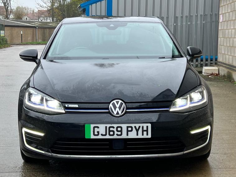 TWO REMOTE KEYS, TWO CHARGES CABLES , LONG MOT TILL 12/10/2026, EXCELLENT CONDITION INSIDE AND OUTSIDE DRIVE AMAZING EV HYBRID REGEN ELECTRIC AS WELL CHEAP TO RUN MASSIVE DISPLAY SCREEN WITH MULTIPLE FEATURES This 2019 Volkswagen e Golf presents a clear vehicle history, offering peace of mind for its next owner. As an electric vehicle, it boasts a 36 kWh battery with a maximum range of 144 miles when new. Charging is convenient, taking approximately 5 hours and 20 minutes at home with a 7kW charger, while rapid public charging can achieve 80% capacity in just 40 minutes. This e Golf comes equipped with modern features including LED headlights, automatic on headlights activated by a dusk sensor, and adaptive cruise control for a more relaxed driving experience. The convenience pack further enhances usability, and the climate control system ensures a comfortable cabin environment.The spacious boot offers ample room for shopping or luggage, making this Volkswagen e Golf a practical choice for everyday use. Its electric powertrain provides a smooth and quiet drive, distinguishing it from conventional petrol or diesel cars. The combination of its efficient electric technology, comprehensive feature set, and generous boot space makes this 2019 e Golf a compelling option for those seeking an environmentally conscious and well equipped vehicle.PX WELL COME , FINANCE AVAILABLE.