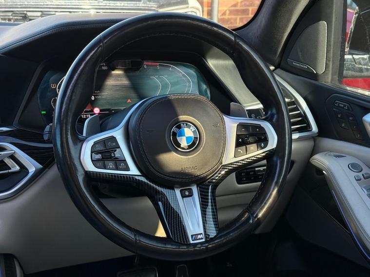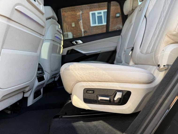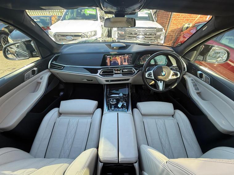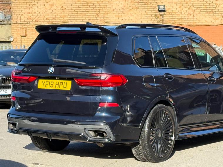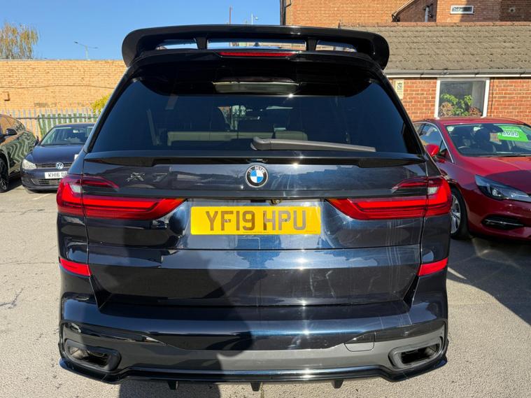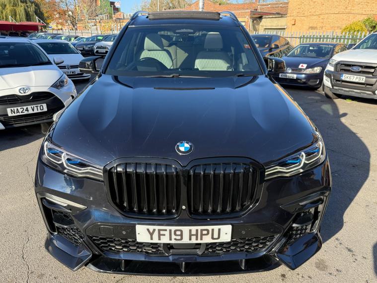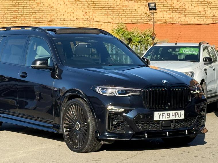 This 2019 BMW X7 30d M Sport offers a superb blend of luxury and capability, presented in excellent condition. As a Euro 6 compliant vehicle, it features a powerful 3.0L diesel engine paired with a smooth four wheel drive system, ensuring confident performance in all conditions. This M Sport variant boasts a spacious interior with seven seats, making it ideal for families or those who require flexible passenger capacity. Notable features include the Premium Package, which adds climate control and a heated steering wheel for enhanced comfort, alongside the M Sport Plus Package for an even more dynamic driving experience. The inclusion of a trailer towing hitch with a towbar, capable of towing up to 2200 kg, adds significant practicality, while the striking M Sport styling is complemented by chrome trims and door surrounds, and a luxurious BMW Individual Alcantara Anthracite headlining.The X7 30d M Sport truly excels with its impressive acceleration, reaching 0-62mph in just 7.0 seconds, a testament to its potent engine and refined engineering. This performance, combined with its substantial towing weight and the convenience of seven seats, positions it as a superior choice compared to many other large SUVs. Furthermore, the generous boot space ensures that practicality is never compromised, even when all seats are in use. This vehicle represents a compelling option for those seeking a premium, versatile, and high performing SUV..