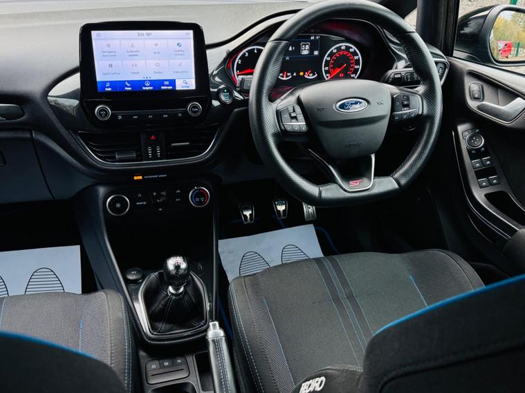 We are proud to present you this Ford Fiesta 1.5T EcoBoost ST-2 in great condition both mechanically and cosmetically, comes with a 12-month MOT, 12 months AA breakdown cover, 6 Months Nationwide warranty parts & labour. SPEC – ST Perfomance pack, ST recaro seats with blue stitching, 17-inch Alloy Wheels, Apple CarPlay and android auto, Cruise Control, Rear parking sensors, Navigation, Start stop, Traction control, Bluetooth, AUX, DAB/FM/AM Radio, USB, Air conditioning, automatic headlights and vipers, Steering Wheel - ST-Line 3-Spoke Leather Trimmed Flat Bottom, Drivers Seat Height Adjustment, Halogen Projector with Black Bezel and Dedicated LED Daytime Running Lights and much more.HISTORY & CONDITION – Free 12-month MOT upon request, Free 12 months AA breakdown cover, Free 6-month warranty. It comes with some service history, also just had a fresh service. HPI Clear-report available. 2 Keys. 1 previous owner. The car is in great condition inside and outside, age related marks but nothing major, video of the car also available on our website.FINANCE – We also provide finance at competitive rates, give us a call for a free finance quote over the phone, from our panel of over 100 lenders. You can drive away the same day.ABOUT US - We also take all types of part exchanges – Video viewing - Nationwide delivery - We take all major cards for payment - As standard all vehicles are supplied with a warranty which covers parts & labour valid nationwide (with an option to extend up to 48 months at an additional cost). We are based in Farnham, GU10 4JX. Please be aware that if you reserve this car on-line via the Autotrader reserve the car may already be sold, as our cars are advertised on many platforms. Auto trader reservation is not linked to our own systems and does not guarantee reservation of the car. Please contact us directly via a phone call, email, or WhatsApp to check the availability of the car and to reserve it..