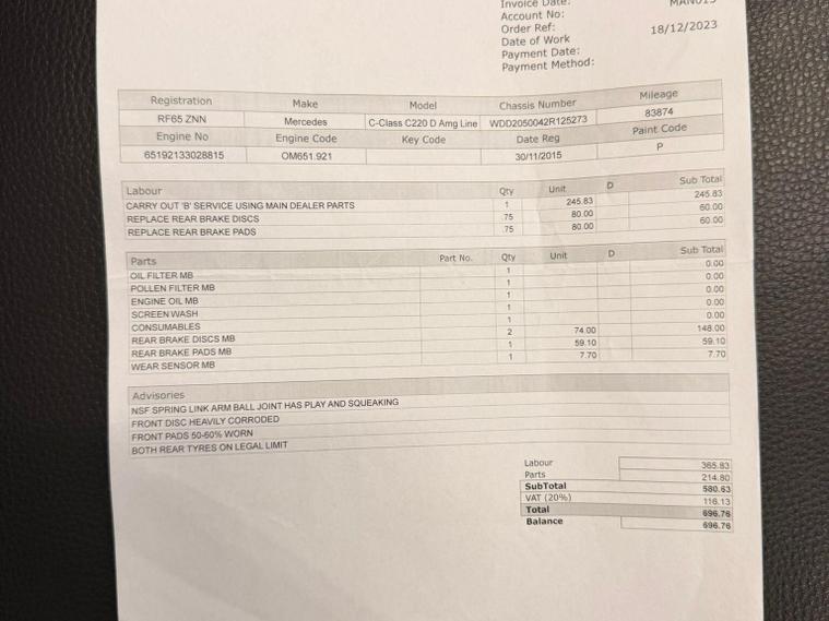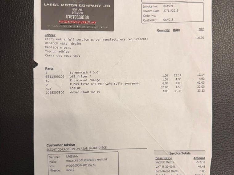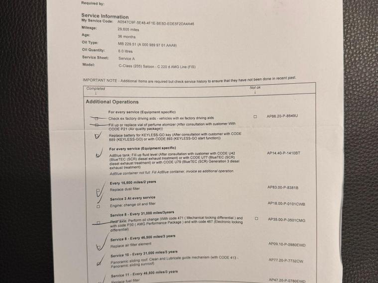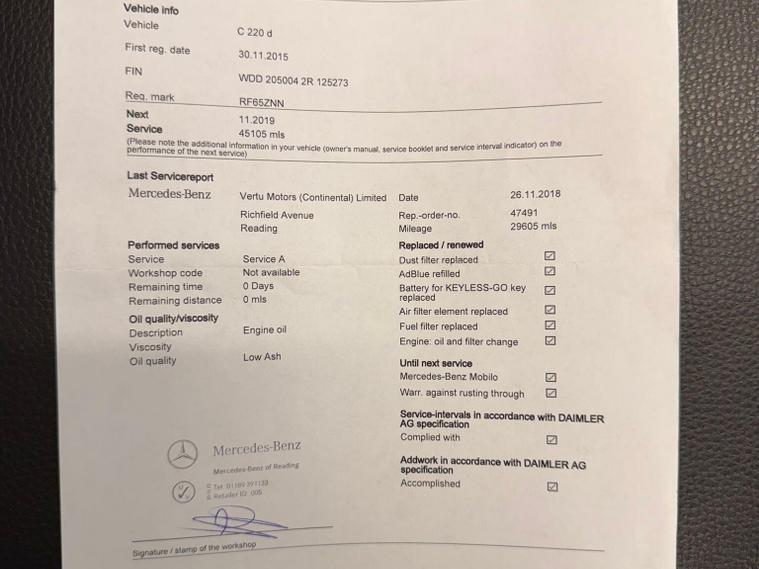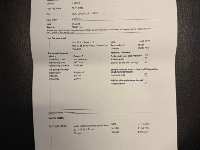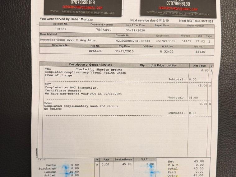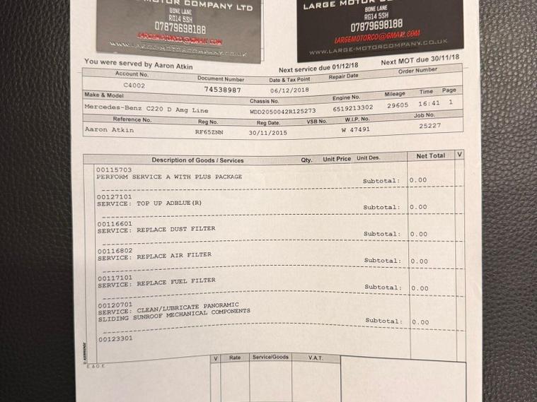 This Mercedes-Benz C Class C220d AMG Line (Premium) from 2016 boasts a single owner and a full service history, with its last service completed at 102, 660 miles. This Euro 6 compliant diesel model features a 2.1L engine and comes with a 3 month warranty and 12 months MOT provided on purchase. Inside, you'll find comfortable black leather upholstery, heated front seats with memory function for the driver, and a panoramic glass sunroof that opens up the cabin. The exterior is enhanced by High Performance LED headlights, adding to the sophisticated AMG Line trim.Experience impressive performance with this C Class, achieving 0-62mph in just 7.4 seconds, which is quicker than many other vehicles in its class. Its fuel economy is a standout feature, offering an excellent 63 mpg, and it also benefits from low CO2 emissions, making it a more economical choice. These highlights demonstrate the superior engineering and thoughtful design that sets this Mercedes-Benz apart..