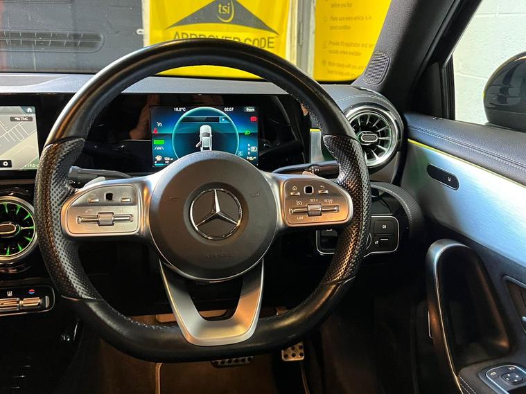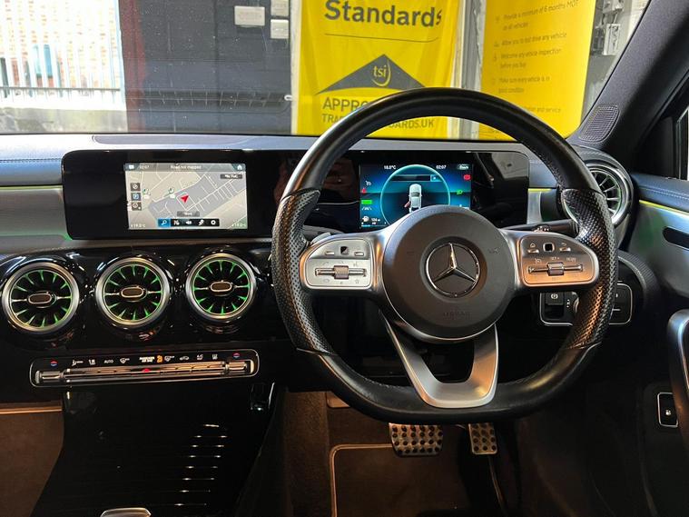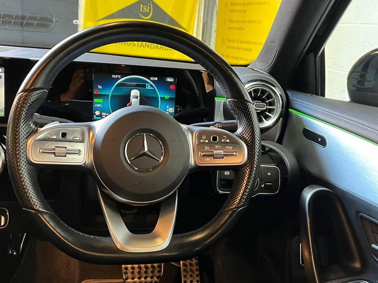 Boasting a single owner from new and a full service history, this VAT QUALIFYING 2021 Mercedes-Benz A Class A250e AMG Line Edition presents a compelling proposition. This Euro 6 compliant plug-in hybrid, powered by a 1.3L petrol engine, offers an efficient and refined driving experience. With an MOT valid until August 2026 and a clear vehicle history check, you can be assured of its roadworthiness. The vehicle comes with a 3 month warranty for added peace of mind.The AMG Line Edition trim enhances the already sophisticated A Class with a suite of desirable features. Navigate tight spaces with ease thanks to the 180 degree reversing camera with parking guidelines and parking assistance. Stay connected and entertained with the 7 inch media display and dual Bluetooth interfaces. Enjoy consistent comfort with the THERMOTRONIC luxury automatic climate control, and benefit from the convenience of automatic headlamp activation. These features collectively demonstrate a higher level of specification and driver focused technology compared to other vehicles in its class..