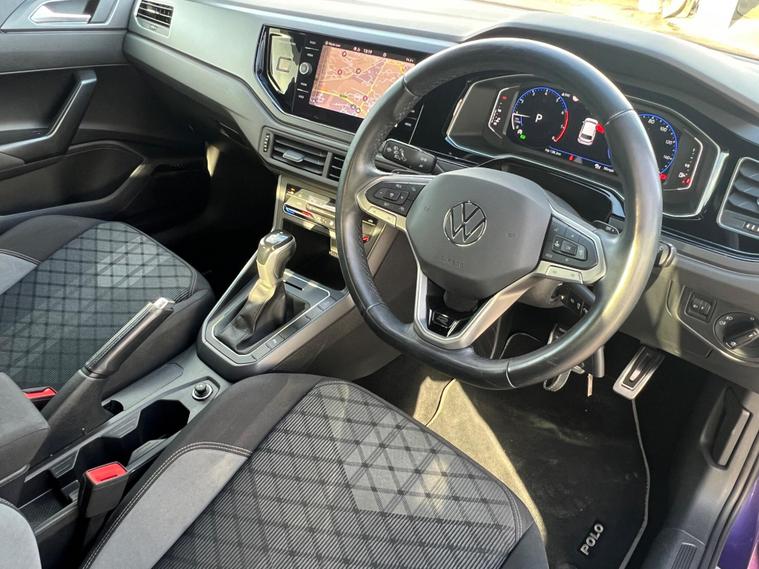One of a kind VW Polo 1.0TSI DSG finished in Vibrant Violet Metallic, GTI Alloys & R Line Alloys Included, Maxton Design, Great Styling & Great Sound, Great Specification; Upgraded Navigation, Apple Car Play & Android Auto, Media, Speed Adaptive Cruise, Lane Change System & Much More, All Viewings Welcome. Call today and use our £99 holding fee before someone else does. This 2022 Volkswagen Polo TSI R Line boasts a full dealership service history, with its last service completed on 2025-01-10 at 35968 miles, ensuring excellent provenance. This Euro 6 compliant model features a 1.0 litre petrol engine and is presented in the R Line trim. Notable features include the advanced IQ Light LED Matrix Headlights, 17 inch Bergamo alloy wheels, and Keyless Access for effortless locking and starting. The Driver Assistance Pack, with front and rear parking sensors, enhances manoeuvrability, while the mobile phone interface offers wireless inductive charging for your convenience.This Volkswagen Polo is designed for practicality and ease of use, offering a generous boot space for all your needs. Its low insurance group rating makes it an economical choice for many drivers. Furthermore, the vehicle will be provided with a 12 month MOT, giving you peace of mind. These aspects, combined with its comprehensive service history and desirable R Line specification, highlight how this Polo stands out from other vehicles in its class..