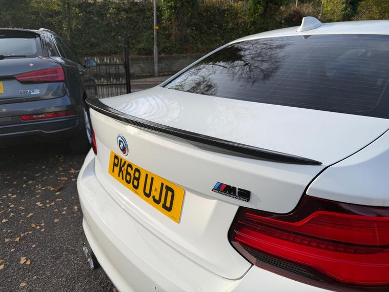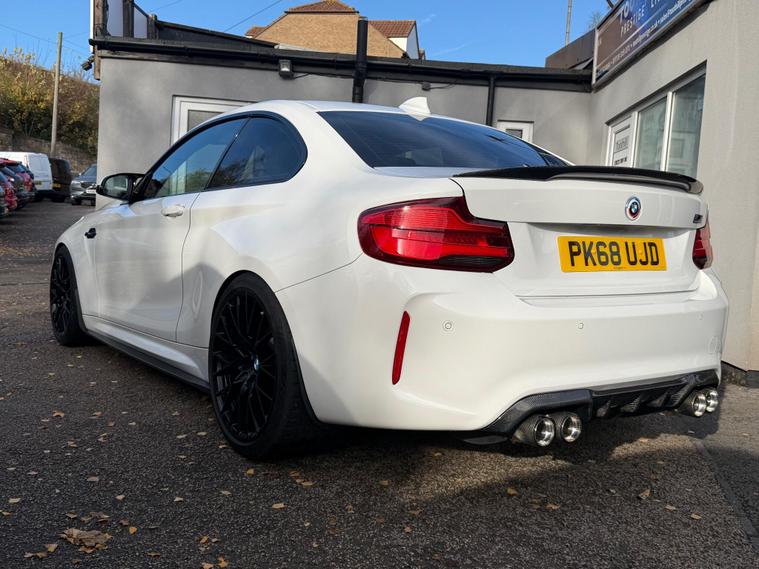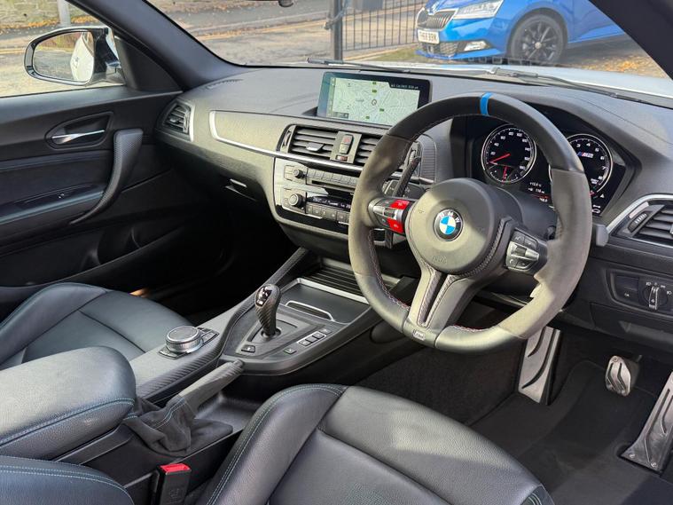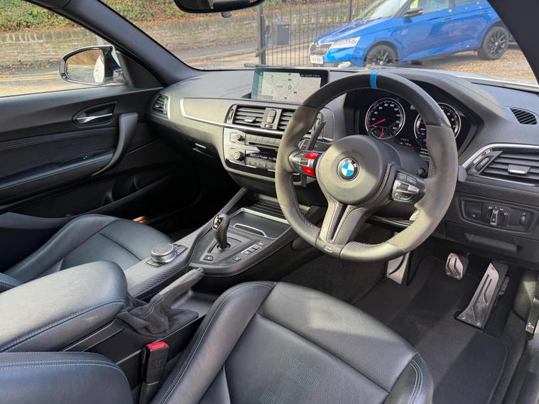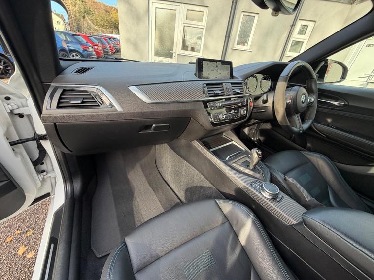 With only 27, 000 miles on the clock, this 2018 BMW M2 BiTurbo Competition represents a rare find for discerning drivers. This Euro 6 compliant, 3.0L petrol model boasts a full service history, ensuring its provenance is as impressive as its performance. It comes equipped with automatic dual zone climate control, LED headlights for superior visibility, and a rain sensor that automatically activates the headlights. Parking is made effortless with front and rear Park Distance Control, further enhanced by the inclusion of an Interior Comfort Package.The M2 Competition truly stands out from its peers, offering an exhilarating 0-62mph acceleration time of just 4.2 seconds, a testament to its powerful BiTurbo engine. This particular example has had only two owners, and its low insurance group rating makes it an even more attractive proposition. These factors combined indicate a vehicle that has been exceptionally well cared for and offers a superior ownership experience compared to other similar models..