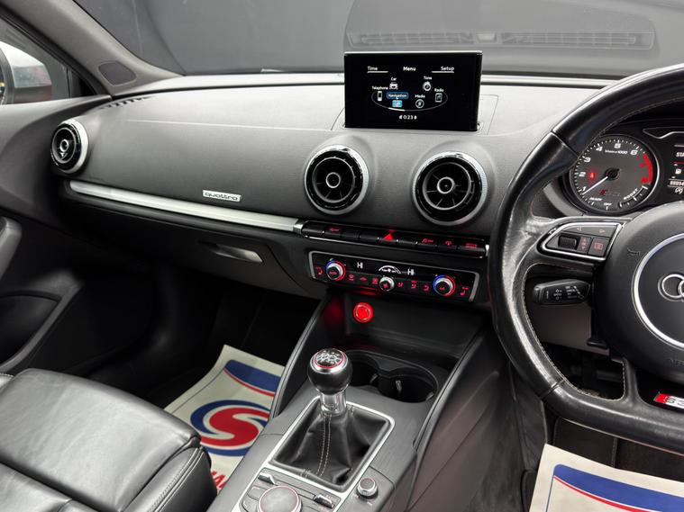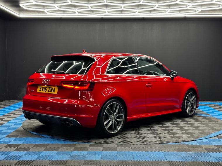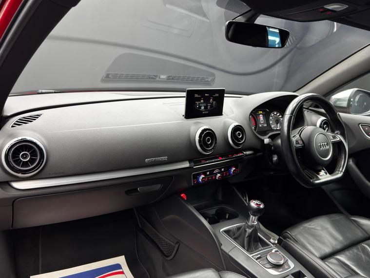 Here at Motor Gurus we are delighted to offer an Audi S3 2.0 TFSI quattro. This vehicle is in immaculate condition inside and out. This specific vehicle is finished in a GLOSS RED and is contrasted by a BLACK LEATHER interior. This vehicle comes included with: REAR PARKING SENSORS, AUTOMATIC HEADLIGHTS, HEATED SIDE MIRRORS, CRUISE CONTROL, TWIN CUPHOLDERS, FRONT HEATED SEATS, CLIMATE CONTROL, DRIVING MODES, DAB RADIO, BLUETOOTH AUDIO, TELEPHONE CONNECTIVITY, TYRE PRESSURE MONITORING AND MUCH MORE! Our Audi S3 2.0 TFSI quattro has come to us with FULL SERVICE HISTORY and 2 KEYS! We will also provide this vehicle with a 12 MONTH MOT as well as a FRESH OIL SERVICE before it leaves our premises (OTR)..