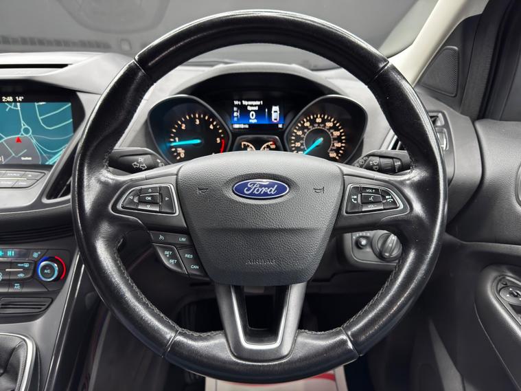 Here at Motor Gurus we are delighted to offer a Ford Kuga 1.5 TDCi Titanium. This vehicle is in immaculate condition inside and out. This specific vehicle is finished in a GLOSS BLACK and is matched with a BLACK LEATHER/CLOTH interior. This vehicle comes included with: REAR PARKING SENSORS, PRIVACY GLASS, AUTOMATIC HEADLIGHTS, CRUISE CONTROL, TWIN CUPHOLDERS, CLIMATE CONTROL, SAT NAVIGATION, DAB RADIO, BLUETOOTH AUDIO, TELEPHONE CONNECTIVITY, APPLE CARPLAY, AMBIENT LIGHTING, HILL START ASSIST, TYRE PRESSURE MONITORING AND MUCH MORE! Our Ford Kuga 1.5 TDCi Titanium has come to us with SERVICE HISTORY and 2 KEYS! We will also provide this vehicle with a 12 MONTH MOT as well as a FRESH OIL SERVICE before it leaves our premises (OTR)..