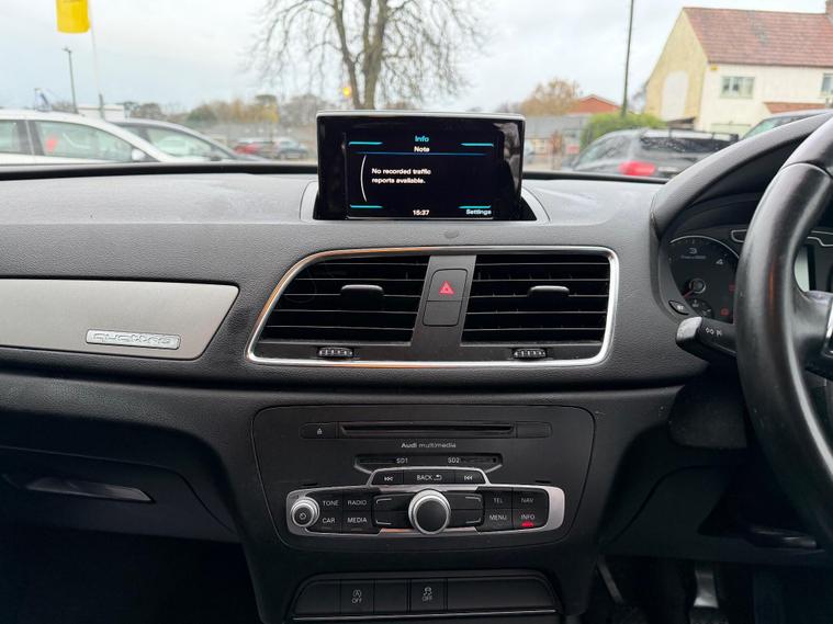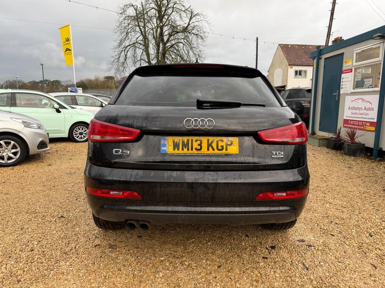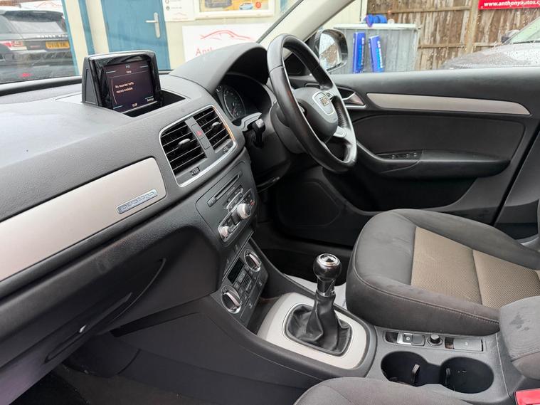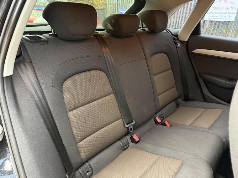 Audi Q3 2.0 TDI SE quattro Euro 5 (s/s) 5dr in Black with 95k miles. HPI Clear, Full Service History and supplied with a fresh interim service. MOT till 3rd September 2026. FEATURES INCLUDE: Clean Cloth Seats, 4 wheel drive, Bluetooth, Climate control, radio multi cd player with aux input, Steering wheel audio and phone controls, folding rear seats, isofix, spare wheel and much more! Free 12 months AA Roadside Breakdown and Recovery. 3 Months Engine & Gearbox Warranty included, Px Welcome, All Major Cards Accepted. ***FINANCE AVAILABLE***call today to view and drive!.