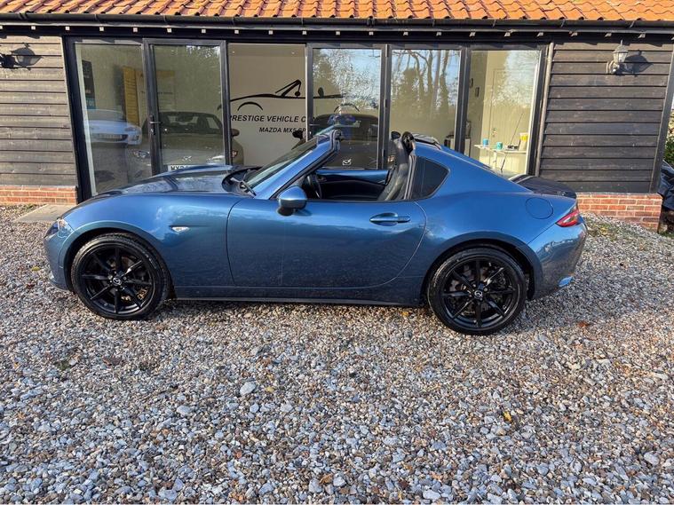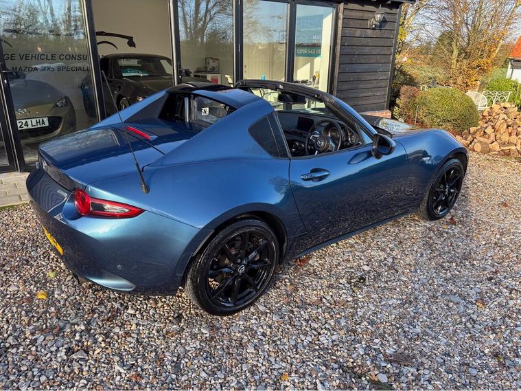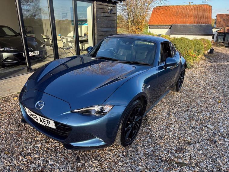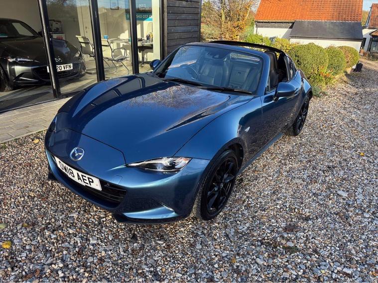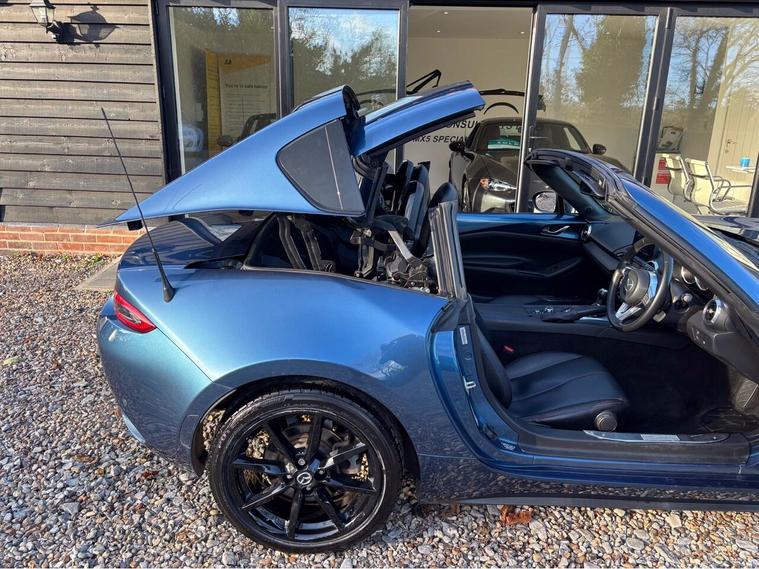 RARE MX5 RF AUTOMATIC !! ONLY 22, 000 MILES FULL MAZDA/SPECIALIST SERVICE RECORDS+ JUST SERVICED + 2 OWNERS COUPE FOLDING HARDTOP+ STUNNING ETERNAL BLUE METALLIC+ FULL HEATED BLACK LEATHER SPORTS SEATS+ UNMARKED 17'' GLOSS BLACK MAZDA ALLOYS WITH 4 BRIDGESTONE TYRES FITTED+ HI SPEC+ CRUISE+ CLIMATE + BLUETOOTH+ BOSE HIFI+ REAR PARKING SENSORS+ FRONT FOG LIGHTS+ CHERISHED MX5 COMES WITH 2 KEYS+ FULL DETAILED+ BEST CHOICE OF QUALITY HIGHLY PREPARED MX5 TO OUR HIGH STANDARD+ ''PLEASE SEE OUR GOOGLE REVIEWS'' WELL ESTABLISHED MX5 SPECIALIST OVER 25 YEARS!.