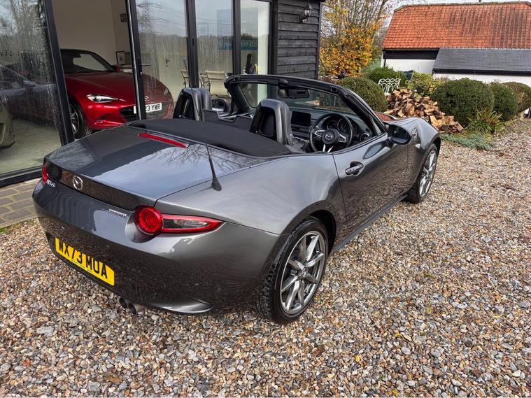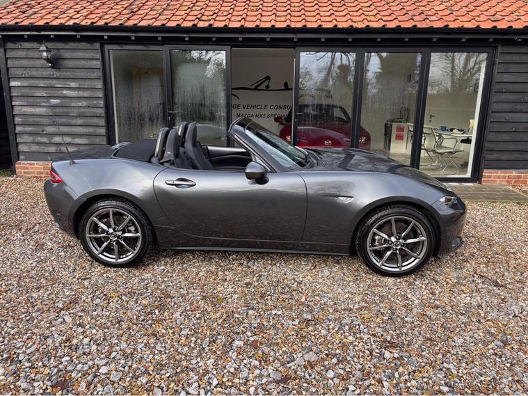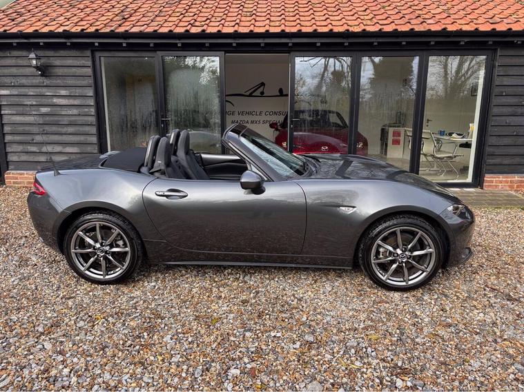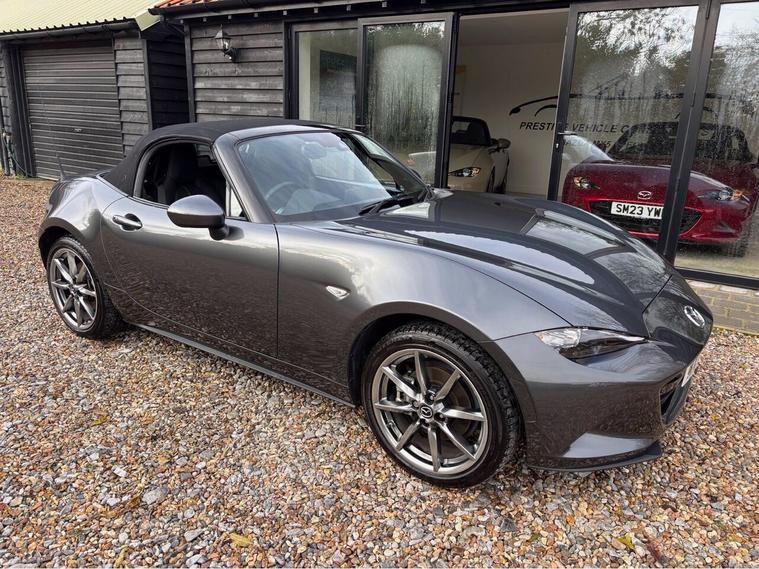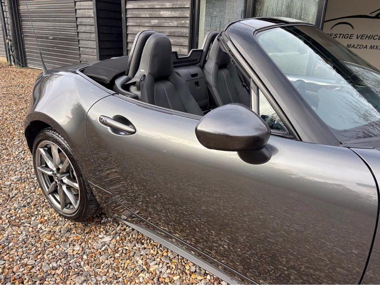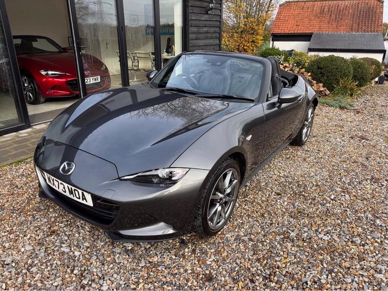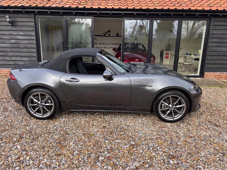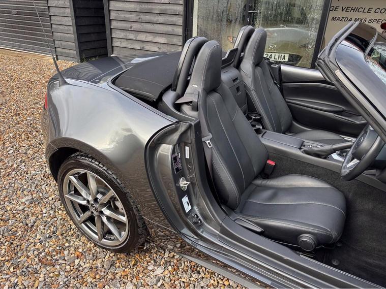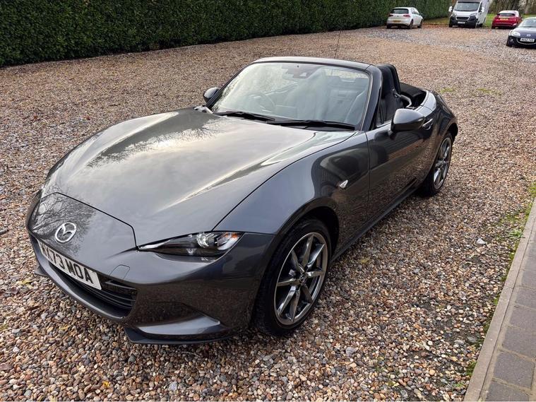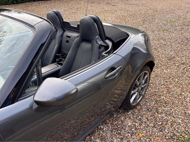 CHERISHED 1 OWNER ONLY 10, 000 MILES! FULL MAZDA SERVICE RECORDSM+ MAZDA WARRANTY 2026 + MACHINE GREY PEARL+ FULL HEATED BLACK NAPPA LEATHER SEATS+ BLACK MOHAIR HOOD GLASS REAR SCREEN+ 17'' SHADOW CHROME ALLOYS+ BOSE HIFI+ APPLE CAR PLAY+ REAR PARKING SENSORS/CAMERA FITTED+ CRUISE+ CLIMATE+ BLUETOOTH+ VIEWING ESSENTIAL+ ''BEST CHOICE OF QUALITY LOW MILEAGE MX5 IN THE UK''PLEASE READ OUR GOOGLE REVIEWS'' ALL MX5 FULLY PREPARED SERVICED BEFORE DELIVERY.