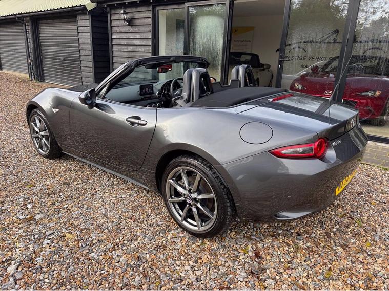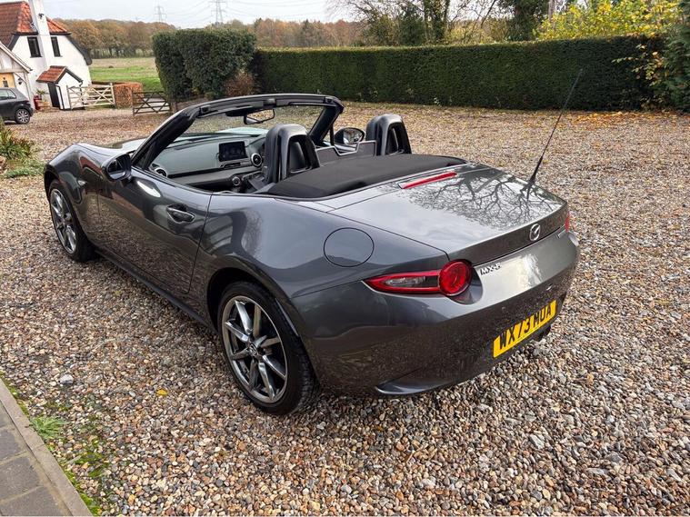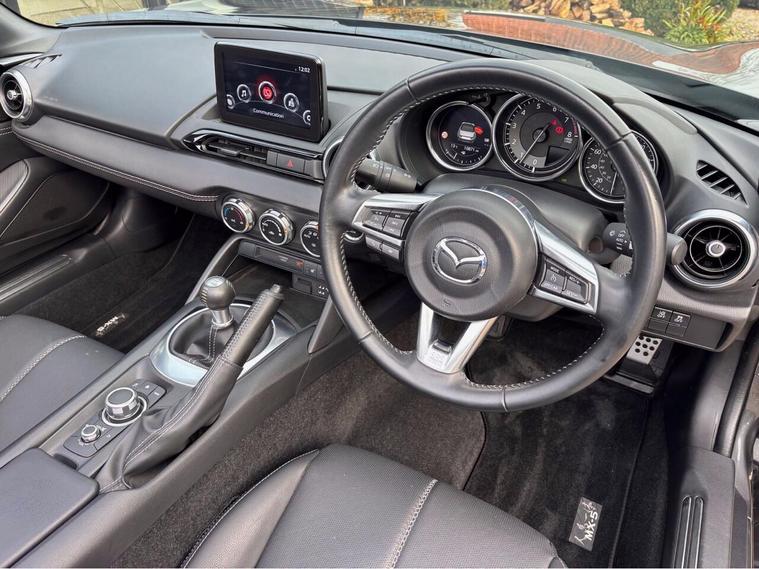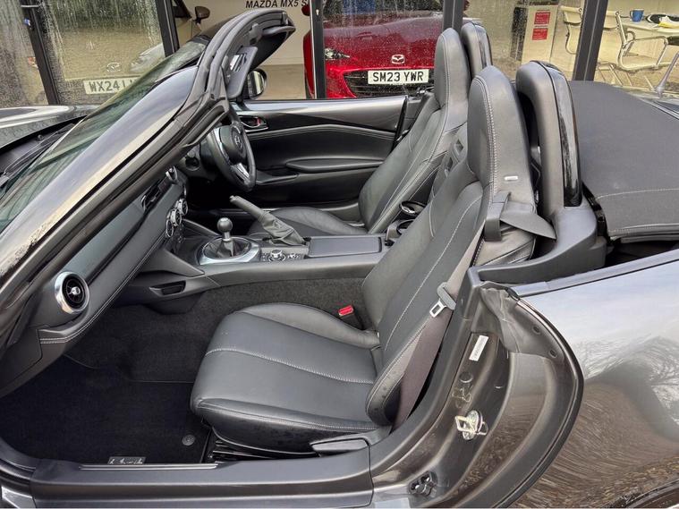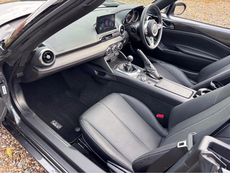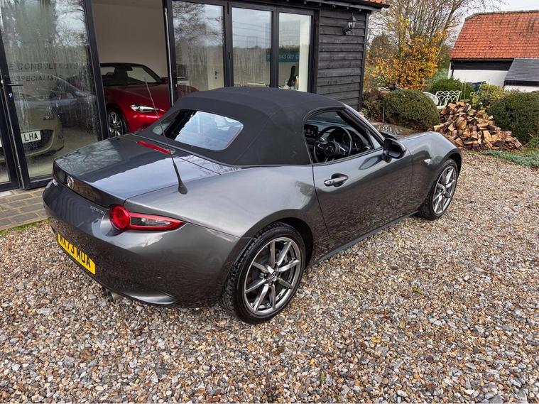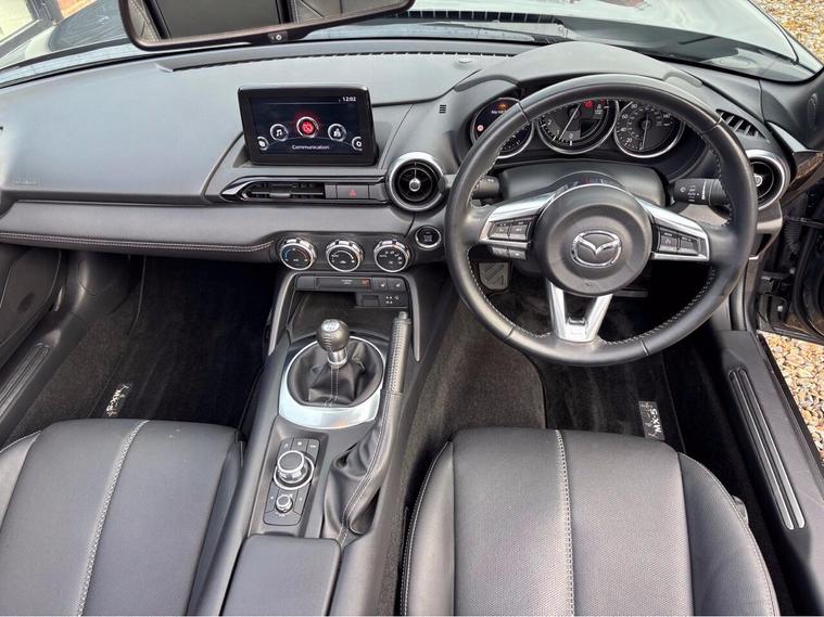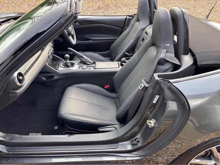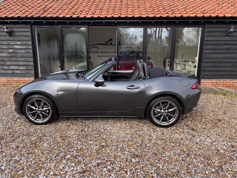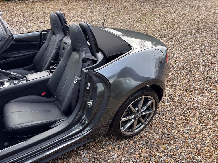 CHERISHED 1 OWNER ONLY 10, 000 MILES! FULL MAZDA SERVICE RECORDSM+ MAZDA WARRANTY 2026 + MACHINE GREY PEARL+ FULL HEATED BLACK NAPPA LEATHER SEATS+ BLACK MOHAIR HOOD GLASS REAR SCREEN+ 17'' SHADOW CHROME ALLOYS+ BOSE HIFI+ APPLE CAR PLAY+ REAR PARKING SENSORS/CAMERA FITTED+ CRUISE+ CLIMATE+ BLUETOOTH+ VIEWING ESSENTIAL+ ''BEST CHOICE OF QUALITY LOW MILEAGE MX5 IN THE UK''PLEASE READ OUR GOOGLE REVIEWS'' ALL MX5 FULLY PREPARED SERVICED BEFORE DELIVERY.