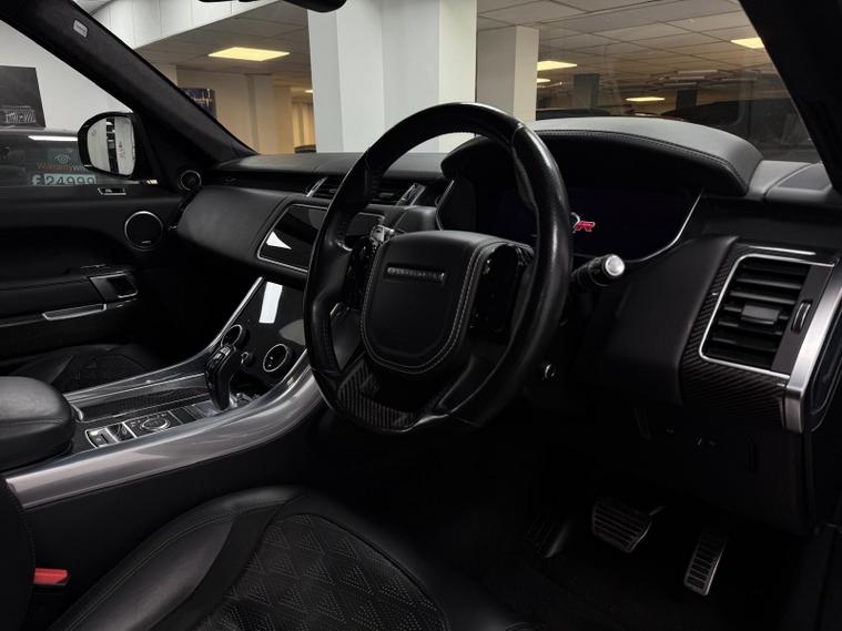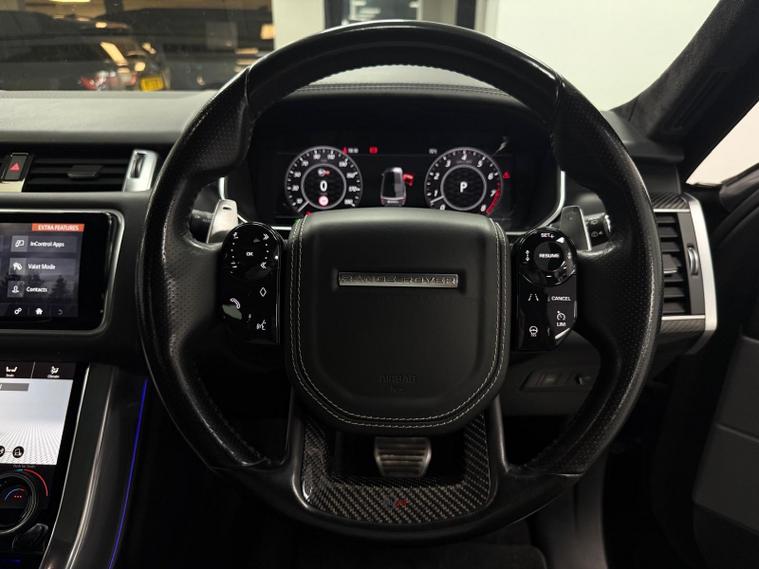 This 2018 Land Rover Range Rover Sport P575 V8 SVR boasts a full service history and a clear vehicle history check, offering excellent provenance for its age. Under the bonnet, a powerful 5.0 litre petrol engine delivers exhilarating performance, reaching 0-60mph in just 4.3 seconds, a testament to its SVR trim and Euro 6 emission class. This four wheel drive model is equipped with a generous towing weight of 3000 kg and features a large boot space, making it as practical as it is potent. Notable features include extended carbon fibre trim finishers, sophisticated Pixel LED headlights with signature daytime running lights, and a rear view camera for enhanced parking assistance.Further enhancing your driving experience, this Range Rover Sport includes a heated steering wheel for comfort in colder weather and seamless Bluetooth connectivity for both phone calls and audio streaming. With only 50, 000 miles on the clock, this vehicle represents low mileage for its age, indicating it has been well cared for and driven less than many comparable models. The combination of its impressive acceleration, robust towing capability, and advanced features clearly sets this Range Rover Sport apart from other vehicles in its class..