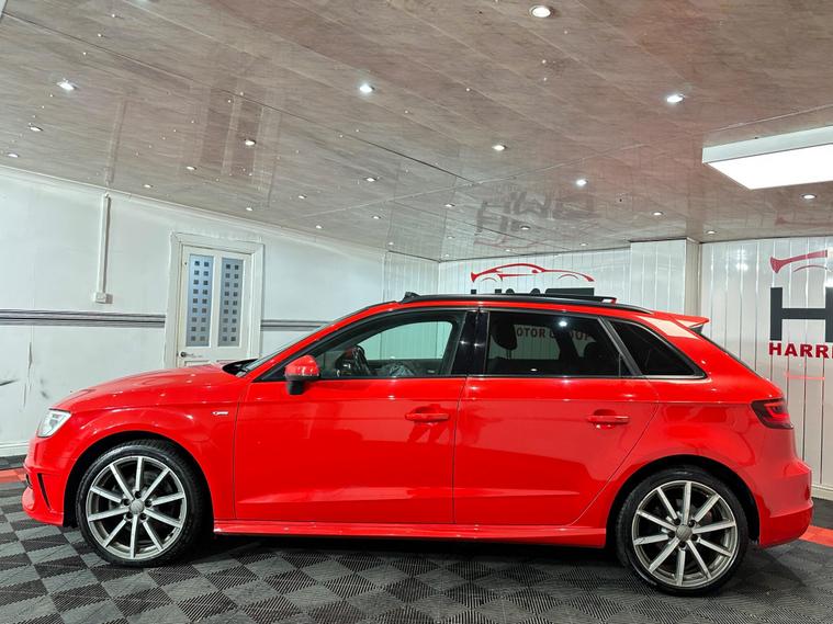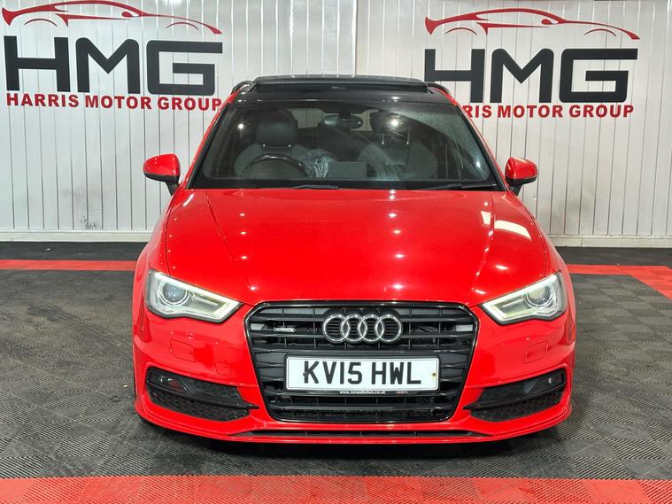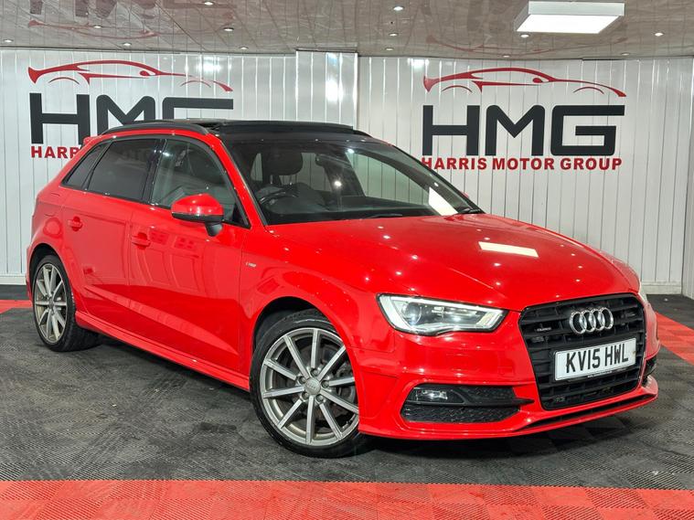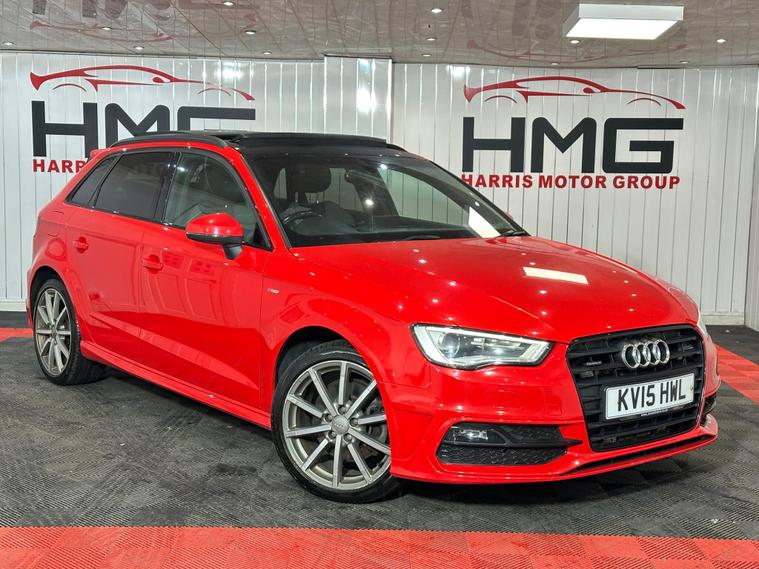 This Audi A3 TDI S line from 2015 boasts a full service history and an MOT valid until November 2026, offering excellent peace of mind. This four wheel drive model features a powerful 2.0 litre diesel engine and meets Euro 6 emission standards. It has had only two owners and comes with a clear vehicle history check. Notable features include a striking Black Styling Package, privacy glass, and the convenience of Audi Parking System Plus with front sensors.Experience the impressive acceleration of this A3, reaching 0 to 62 miles per hour in just 6.9 seconds, a performance that sets it apart. The spacious interior is enhanced by heated front seats for comfort and a large panoramic glass sunroof.FREE DELIVERY WITHIN 40 MILES AT ADVERTISED PRICE!! Walk around video available via whats app. Same day delivery available!! 2015 15 Reg Audi A3 2.0 TDI S line Sportback S Tronic quattro Euro 6 (s/s) 5 door . Drives Flawlessly without any issues. Gearbox and engine are spot on. 2 Owners, Hpi Clear. Mot November 2026. 140, 125 Miles Warranted with Service history. 2 keys, Panoramic Tilt and Slide roof, Heated seats, Sat Nav, Alloys, Air con and much more. Read specification list below. Ring for more information. Part Exchange at TRADE price. Drive away insurance, Nationwide Delivery and warranties available. Late viewings also available!.
