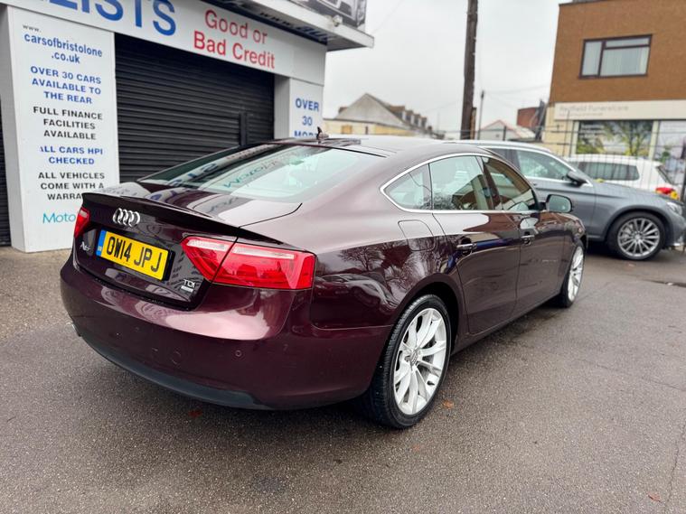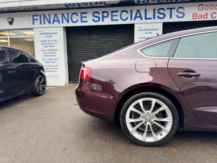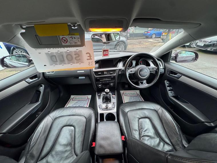 HERE WE HAVE ON SALE IS THIS SUPERB AUDI A5 2.0 TDi TECHNIK SPORTSBACK FINISHED IN METALLIC RED....................IT COMES WITH FULL BLACK HEATED LEATHER INTERIOR, SATELLITE NAVIGATION, CRUISE CONTROL, ALLOY WHEELS, DAB RADIO/CD PLAYER, MULTI FUNCTION STEERING WHEEL, BLUETOOTH WITH BLUETOOTH AUDIO, PARKING SENSORS WITH BOTH VISUAL AND AUDIO ALERTS, ELECTRIC WINDOWS, ELECTRIC MIRRORS AND REMOTE CENTRAL LOCKING..........................THIS VEHICLE HAS CONSISTENT SERVICE HISTORY AND WILL BE SERVICED AT POINT OF SALE....................IT IS PRESENTED IN EXCELLENT CONDITION THROUGHOUT AND DRIVES LIKE WISE.......................VIEWING ESSENTIAL..
