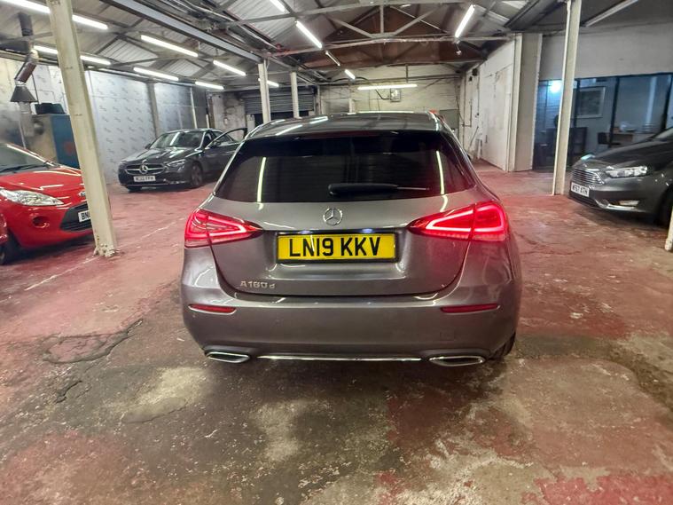 This 2019 Mercedes Benz A Class A180d Sport (Executive) boasts a clear vehicle history, offering you peace of mind. Powered by an efficient 1.5L Euro 6 diesel engine, this Sport trim model comes equipped with the desirable Executive Package, which includes front and rear parking sensors for effortless manoeuvring, and heated seats for added comfort. Connectivity is enhanced with a dual Bluetooth interface featuring two USB Type C ports, and you'll appreciate the convenience of LED High Performance Headlamps with integrated daytime running lights, along with automatic headlamp activation.The A Class A180d Sport (Executive) also features a 180 degree reversing camera with parking guidelines, making parking simpler than ever. These highlights demonstrate how this Mercedes Benz offers a superior driving experience compared to other vehicles in its class. Furthermore, you will find ample storage thanks to its large boot space, perfect for all your luggage and shopping needs..