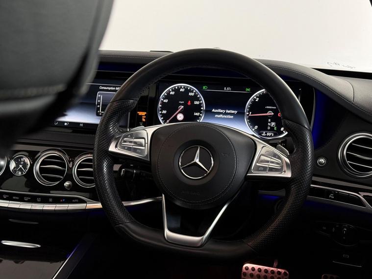 Our Mercedes-Benz S Class is finished in Black. With a great specification, our S Class includes features such as 19 Inch Alloy Wheels, Electric Folding Mirrors, Front and Rear Electric Windows, Panoramic Sunroof, Air Conditioning, Bluetooth, DAB Radio, Multi-Function Steering Wheel, Paddle Shift, Parking Sensors, Reverse Camera, Satellite Navigation, Speed Limiter, USB, Black Leather Trim, Central Armrest, Cup Holders, Electric Memory Seats, Folding Rear Seats, Heated Seats, Lumbar Support, Rear Central Armrest, Start/Stop Button, ISOFIX, LED Daytime Running Lights, LED Headlights, LED Tailights, Remote Central Locking. All Car Planet stock is carefully picked, so you can buy from us with confidence. Each vehicle undergoes a thorough 150-point check at our preparation hub by our qualified specialists. Every car purchased comes with a free 12-month AA breakdown cover plan option to extend to 60 months warranty. You can reserve any of our cars online, with a refundable £99 reservation at dealer's website We also offer the option to purchase online and you can have your new car delivered to your door step from £199 in as little as 48 hours. Alternatively, come and visit our Barnet site where our friendly Car Gurus will assist you every step of the way. If you prefer a virtual appointment, we offer same-day video-viewings. We offer a range of flexible finance options from our panel of lenders. Part-exchanges are available upon request. Simply select, secure and drive..