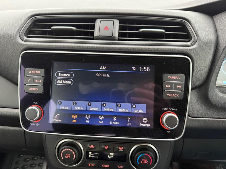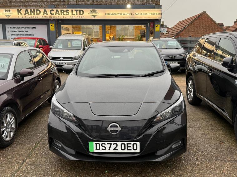 This 2022 Nissan Leaf Acenta presents a superb opportunity with exceptionally low mileage for its age, having covered just 15, 736 miles, and boasts a clear vehicle history check. As an electric vehicle, it offers a 41 kWh battery with a maximum range of 168 miles when new. Charging is convenient, taking approximately 7 hours and 30 minutes at home using a 7kW charger, while rapid public charging can take it from empty to 80% in about 1 hour and 20 minutes. Key features include Intelligent Key with a push button start for keyless entry, a rear view camera with parking assistance, and seamless integration with Android Auto and Apple CarPlay.Further enhancing your driving experience, this Leaf Acenta includes Blind Spot Intervention for added safety and automatic climate control with a pollen filter and timer, ensuring a comfortable cabin environment. The generous boot space is a practical highlight, offering ample room for shopping or luggage. These features collectively demonstrate how this Nissan Leaf stands out, providing a well equipped and efficient electric motoring solution..