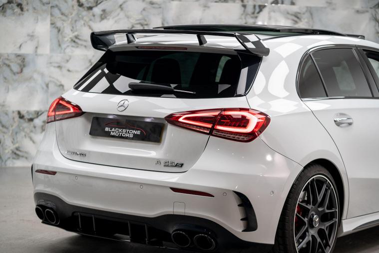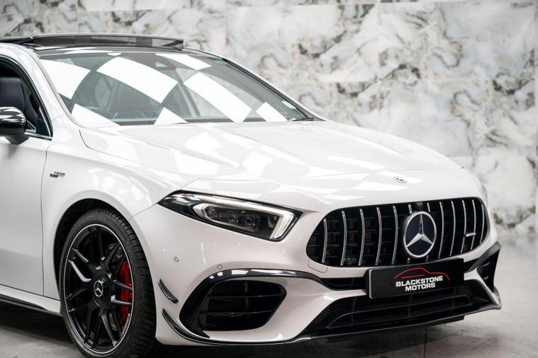 This 2022 Mercedes Benz A Class A45 AMG S Plus boasts exceptionally low mileage for its year, having covered just 19, 000 miles. This premium hatchback features a powerful 2.0L petrol engine paired with a four wheel drive system, ensuring dynamic performance and confident handling. As a Euro 6 compliant vehicle, it meets stringent emission standards. The AMG S Plus trim level comes equipped with a host of desirable features, including heated front seats for added comfort, Blind Spot Assist to enhance safety, and a comprehensive Parking Package with front and rear sensors and a rear camera for effortless manoeuvring.Experience the thrill of rapid acceleration with this A45 AMG S Plus, capable of reaching 0-62mph in a remarkable 3.9 seconds, a performance benchmark that sets it apart from many other vehicles in its class. The MULTIBEAM LED headlights with Adaptive Highbeam Assist Plus provide superior visibility, automatically adjusting to optimise your view of the road ahead. For seamless connectivity, it offers dual Bluetooth interfaces. Furthermore, this Mercedes Benz A Class provides generous boot space, making it a practical choice for everyday use and longer journeys alike, combining exhilarating performance with everyday usability..