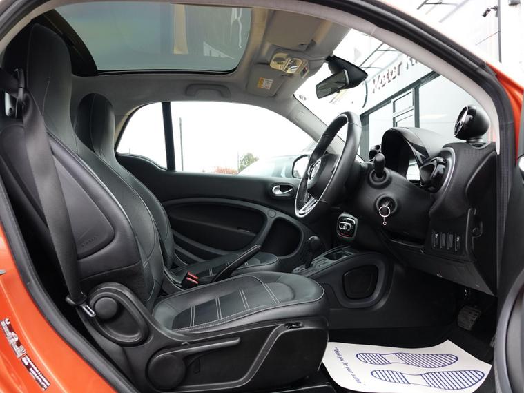 This 2019 Smart Fortwo Prime boasts exceptionally low mileage for its age, having covered just 17, 946 miles, and has been cherished by only one owner. This Euro 6 compliant 1.0L petrol model comes with a clear vehicle history check and benefits from a recent service on 28 February 2025 at 16, 901 miles. A 12 month MOT will be provided on purchase, and you can drive away with peace of mind thanks to a 3 month warranty. The striking Tridion Safety Cell in Lava Orange Metallic Paint adds a distinctive touch to this already appealing vehicle.Experience comfort and convenience with features like automatic climate control and heated seats for both the driver and front passenger. Stay entertained on your journeys with DAB digital radio, and navigate tight spaces with ease thanks to the rear parking assistance and sensors. The Smart Fortwo Prime stands out with its impressive fuel economy of 48 mpg, indicating it is more economical than many similar vehicles. Furthermore, its low CO2 emissions highlight its environmental consideration, making it a sensible choice for modern driving..