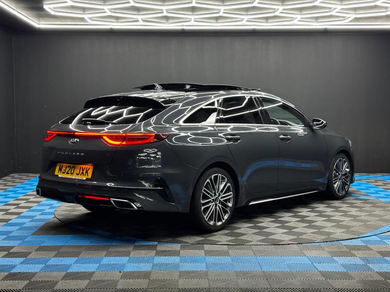Here at Motor Gurus we are delighted to offer a Kia ProCeed 1.4 T-GDi GT-Line S Shooting Brake DCT. This vehicle is in immaculate condition inside and out. This specific vehicle is finished in a GLOSS GREY and is contrasted by a BLACK LEATHER/SUEDE interior. This vehicle comes included with: FRONT & REAR PARKING SENSORS, REAR PARKING CAMERA, PRIVACY GLASS, SLIDING GLASS PANORAMIC ROOF ELECTRIC TAILGATE, PERFORATED GRIPPED LEATHER STEERING WHEEL, DRIVER ELECTRIC/MEMORY SEAT, FRONT & REAR HEATED SEATS, HEATED STEERING WHEEL, JBL SOUND SYSTEM, DIGITAL COCKPIT, AUTO HOLD, TWIN CUPHOLDERS, AUTO PARK, WIRELESS PHONE CHARGING, CLIMATE CONTROL, SAT NAVIGATION, DAB RADIO, BLUETOOTH AUDIO, TELEPHONE CONNECTIVITY, APPLE CARPLAY, BLIND SPOT MONITORING, EASY ENTRY/EXIT AND MUCH MORE! Our Kia ProCeed 1.4 T-GDi GT-Line S Shooting Brake DCT has come to us with SERVICE HISTORY and will also come provided with a 12 MONTH MOT as well as a FRESH OIL SERVICE before it leaves our premises (OTR)..