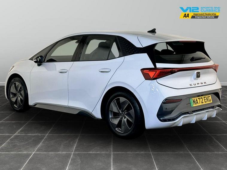 The CUPRA Born V1 is equipped with a range of notable features designed to enhance your driving experience. These include a heated, leather wrapped multifunction steering wheel for comfort in all conditions, and Pilot M with adaptive cruise control for effortless journeys. Parking is made simpler with rear camera assistance and front and rear parking sensors, all managed through the Park Assist system. Connectivity is seamless thanks to Bluetooth, and the Keyless Go central locking system with keyless entry adds a touch of modern convenience. For peace of mind this vehicle has only had 1 registered owner and has completed a multi point AA inspection. Vehicle specification can be found below. From time to time vehicles have manufacturer recalls notified. Please read our recall policy on our website for further information. Please be advised that the advertised electric vehicle (EV) listings may experience battery degradation over time, resulting in reduced performance and range compared to the original specifications. Factors such as usage patterns, environmental conditions, and charging practices can contribute to this degradation. While we strive to provide accurate information, the actual battery health and performance of each EV may vary. Customers are encouraged to conduct thorough research and consider the potential impact of battery degradation before making a purchase decision. We recommend consulting with a qualified technician or conducting a battery health inspection for further assessment. This vehicle comes with an AVILOO Battery Health Certificate - the global standard for EV battery testing. Full independent analysis confirms excellent battery condition with detailed State of Health assessment, cell-level checks, and accurate range data. Certificate included with purchase for your complete peace of mind and future resale value..