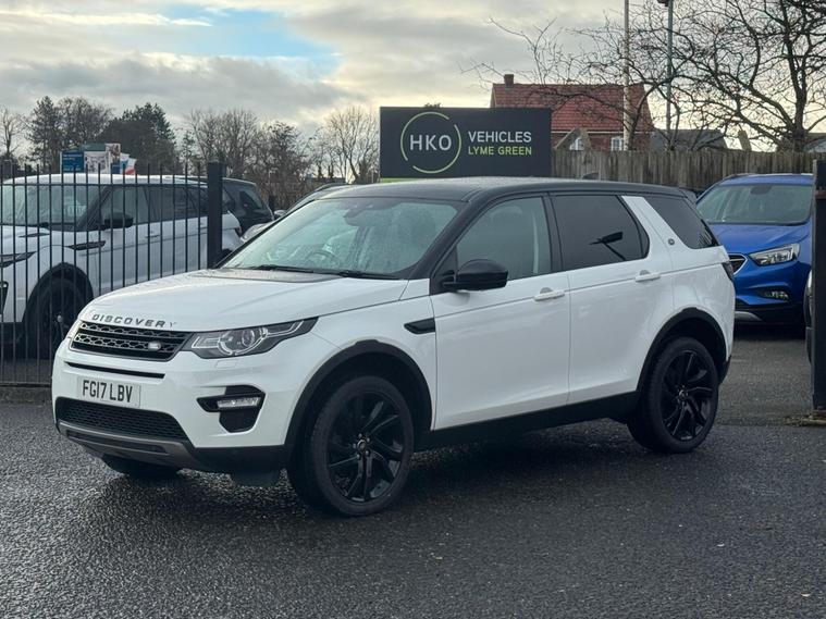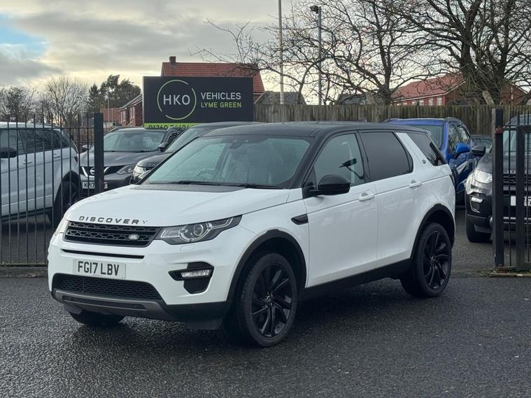 Welcome to HKO Vehicles Lyme GreenWe are pleased to offer this stylish and highly sought-after Land Rover Discovery Sport 2.0 TD4 HSE Black Automatic 4WD, finished in striking white with contrasting Black Pack styling. Registered in 2017 (17) and having covered 95, 000 miles, this attractive example has had just two careful owners from new. The HSE Black model brings together luxury, capability, and bold design, making it an ideal choice for families and those who enjoy premium motoring.Powered by the strong and reliable 2.0-litre TD4 diesel engine producing 180 PS, paired with a smooth automatic gearbox and intelligent four-wheel drive system, this Discovery Sport delivers confident handling, refined comfort, and outstanding all-weather capability.The desirable HSE Black Edition specification provides an excellent range of premium features, including: • Black styling pack with gloss black exterior accents • Full leather upholstery with heated electric front seats • Touchscreen infotainment system with satellite navigation, Bluetooth, and DAB radio • Reversing camera with front and rear parking sensors • Panoramic glass roof creating a bright and modern cabin environment • Dual-zone climate control • Cruise control and multifunction steering wheel • Meridian premium sound system • Power tailgate and keyless entry/start • Gloss black alloy wheels enhancing its sporty appearance • LED signature lightingThis vehicle has been well maintained with a full service history and is presented in excellent condition both inside and out.We are proud to be an AA Approved Dealer, and with this vehicle you will receive 12 months AA Breakdown Cover, a fresh 12-month MOT, and a 3-month nationwide warranty for your complete peace of mind.Finance is available – you can apply directly via our website or call us on 01260475378 for an instant decision. Same-day collection is available, subject to vehicle status.Visit HKO Vehicles Lyme Green today to view and test drive this superb Land Rover Discovery Sport HSE Black Automatic 4WD – a perfect blend of premium co.