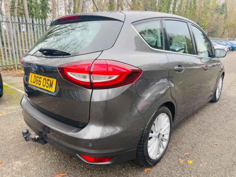 GREY, SERVICE HISTORY (9 SERVICE STAMPS), FINANCE AVAILABLE, NAVIGATION SYSTEM, PARKING SENSORS, SPARE KEY, ONLY ONE FORMER KEEPER, ONLY TWENTY POUND ROAD TAX PER YEAR, START/STOP, CRUISE CONTROL, ULEZ COMPLIANT SUPERB DRIVE, VERY ECONOMICAL, ALLOY WHEELS, CLIMATE CONTROL, VERY WELL LOOKED AFTER, VERY CLEAN IN AND OUT, This 2016 Ford C-Max TDCi Titanium has been cherished by just one owner since new, offering a superb example of this versatile family car. Powered by an efficient 1.5 litre diesel engine, it meets Euro 6 emissions standards and boasts an impressive fuel economy of up to 67 miles per gallon. The Titanium trim level ensures a well equipped interior, featuring dual zone electronic automatic climate control for personalised comfort and the Ford SYNC2 DAB audio system with Bluetooth connectivity for seamless entertainment and communication. Automatic headlights, which include an automatic on function, add to the convenience and safety of your driving experience.This C-Max is designed to make your journeys easier, offering a large boot space perfect for shopping trips or family holidays. Its low CO2 emissions are a testament to its efficient design, making it a more environmentally conscious choice. With an MOT valid until September 2026, this vehicle provides excellent value and peace of mind, indicating it is in good condition and ready for its next owner..