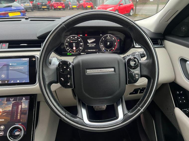 This 2019 Land Rover Range Rover Velar D180 R Dynamic SE is a Euro 6 compliant vehicle, offering a sophisticated driving experience. Powered by a 2.0 litre diesel engine and featuring a Four Wheel Drive drivetrain, this model is equipped with the R Dynamic SE trim. It boasts a substantial towing weight of 2400 kg, making it a capable companion for various needs. Inside, you will find perforated Windsor leather in Light Oyster and a Two Zone Climate Control system for passenger comfort.The Range Rover Velar D180 R Dynamic SE excels with its impressive 0-60mph acceleration in just 8.5 seconds, demonstrating its responsive performance. This vehicle is further enhanced by a premium Meridian Signature Sound System delivering 1600W of audio power, and a 360 Degree Parking Aid with a camera system for effortless manoeuvring. The Terrain Response 2 with Dynamic Program allows for optimised handling across different surfaces, and the generous boot space ensures practicality for all your journeys..