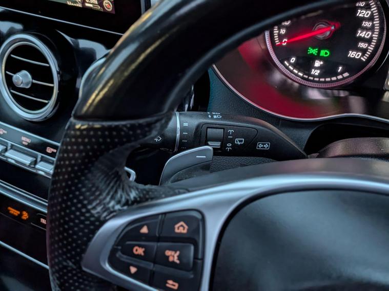 - Steering Wheel - 3-Spoke Multi-Function AMG in Black Leather with Flattened Bottom Section and Chrome Inserts and Perforated Leather in Grip Area