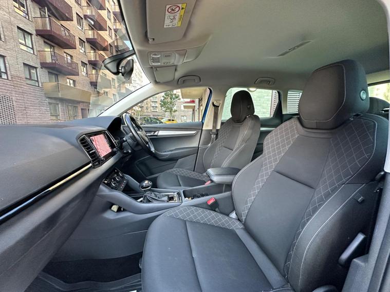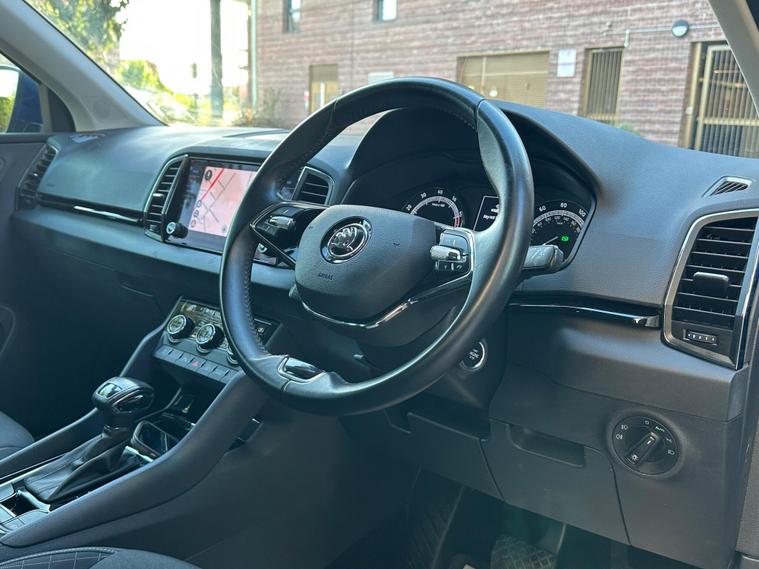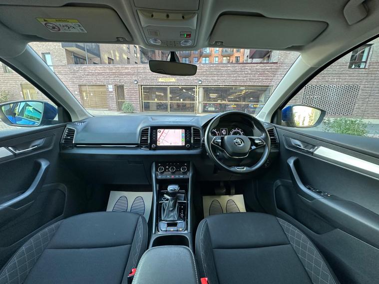 This 2021 Skoda Karoq TSI SE Technology is a remarkable find, boasting an incredibly low mileage of just 17, 000 miles from its single owner, complemented by a full service history and a generous 24 months of warranty for your peace of mind. As a Euro 6 compliant 1.5 litre petrol model, this SE Technology trim offers a refined driving experience, enhanced by features such as dual zone climate control, automatic headlights with a light and rain sensor, and an auto dimming rear view mirror. You'll also appreciate the convenience of front and rear parking sensors, a DAB digital radio, and Bluetooth connectivity, all contributing to a comfortable and connected journey.The Skoda Karoq truly stands out with its impressive fuel economy of 45 miles per gallon, making it an economical choice for your daily travels. Its low CO2 emissions further underline its efficiency, while the low insurance group rating means lower running costs. For those who need practicality, the large boot space provides ample room for luggage or shopping. Performance is also a strong point, with a brisk 0 to 60 miles per hour acceleration time of just 8.5 seconds, indicating that this Karoq offers a compelling blend of efficiency, practicality, and enjoyable driving dynamics..