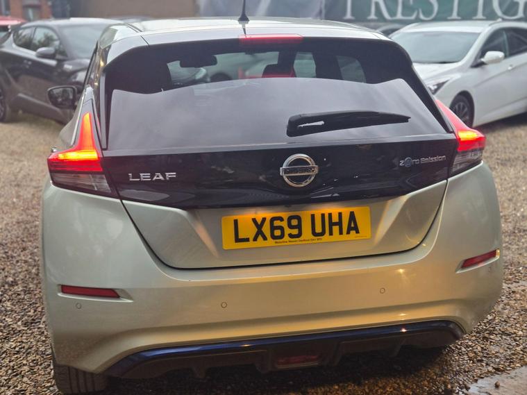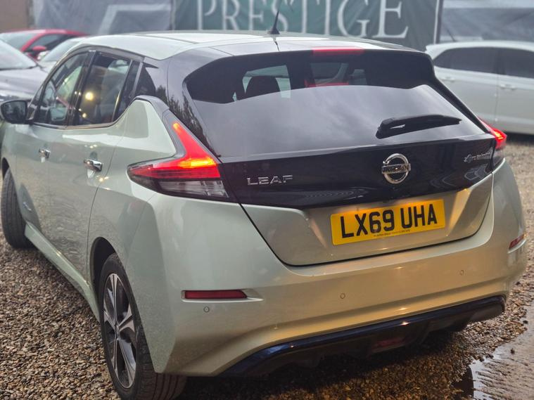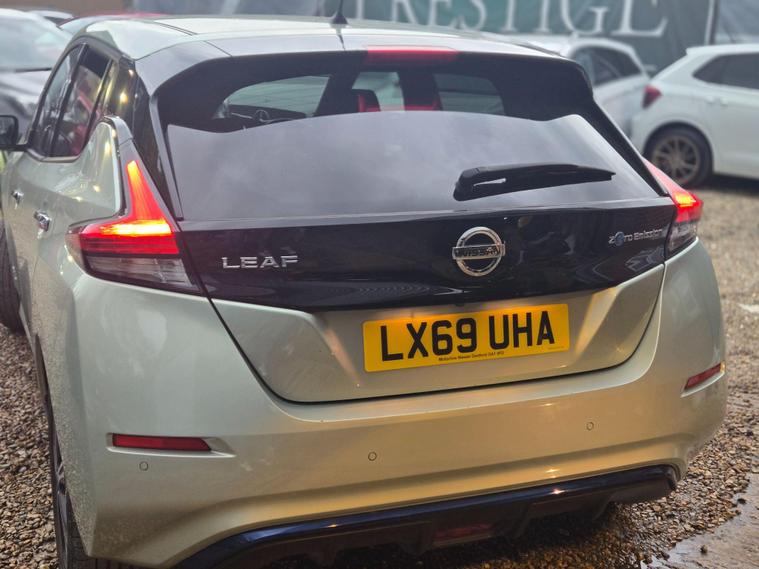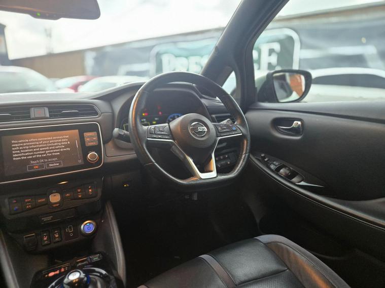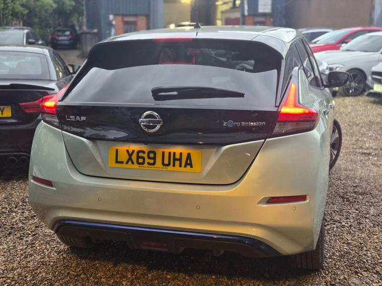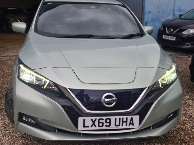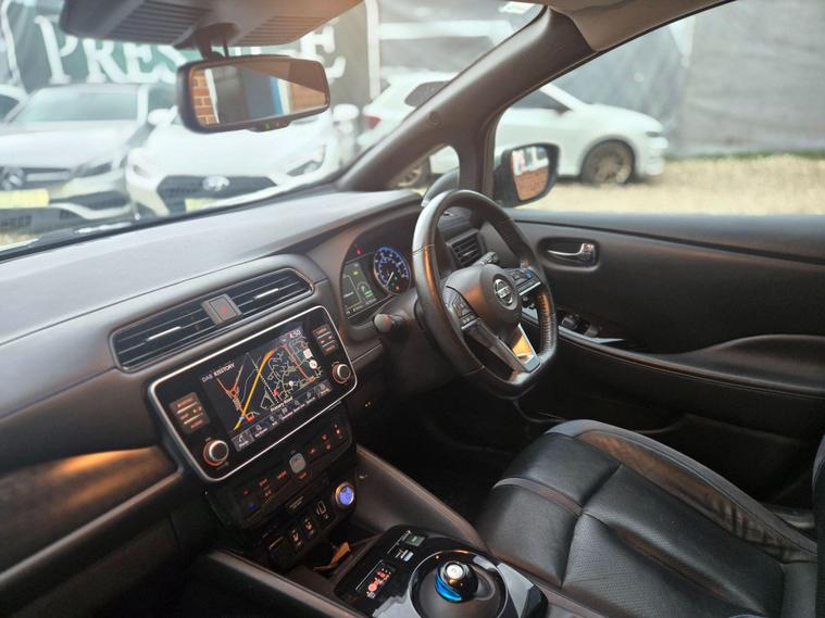 APPLY FOR FINANCE VIA OUR WEBSITE FOR SAME DAY DECISION + AUTOMATIC + ULEZ FREE + ALL ELECTRIC + SAT NAV + REVERSE PARKING CAMERA + FREE 6 MONTHS FULL COVER WARRANTY + FULL LEATHER SEATS + BOSE AUDIO WITH 7 SPEAKERS + 2 KEYS + 1 OWNER FROM NEW + FRONT AND REAR HEATED SEATS + HEATED STEERING WHEEL + LONG MOT + USB + AUX + FREE DRIVE AWAY INSURANCE + YOU CAN APPLY FINANCE ON LINE VIA OUR WEBSITE + MESSAGE US VIA WHATSAPP AT 01753293362 / 01753293362 + VIDEO VIEWING AVAILABLE VIA WHATSAPP + CLICK AND COLLECT WITH JUST £100 DEPOSIT + NATIONWIDE HOME DELIVERY AVAILABLE WITH DELIVERY CHARGEThis 2019 Nissan Leaf Tekna is a fantastic example, having had only one owner since new. As an electric vehicle, it offers a 40 kWh battery with a maximum range of 168 miles when new. Charging is convenient, taking approximately 7 hours and 30 minutes at home using a 7kW charger, while rapid public charging can take you from empty to 80% in just 1 hour and 20 minutes. This Tekna model comes equipped with automatic headlights that activate with a dusk sensor, and for your comfort, it features heated front and rear seats along with a heated steering wheel. Parking is made easier with front and rear parking sensors, and you can enjoy your journeys with the BOSE premium audio system, complete with 7 speakers.The generous boot space in this Nissan Leaf provides ample room for your shopping or luggage, making it a practical choice for everyday use. The inclusion of features like the heated steering wheel and seats, alongside the BOSE sound system, sets this Tekna trim apart, offering a more comfortable and enjoyable driving experience compared to other models..