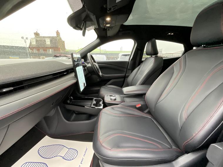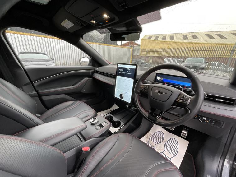 This 2021 Ford Mustang Mach-E Extended Range boasts exceptionally low mileage for its age, having covered just 29319 miles. This electric four wheel drive model offers a substantial 99 kWh battery, providing a maximum range of 335 miles when new. Charging at home with a 7kW charger takes approximately 14 hours and 36 minutes, while rapid public charging can take the battery from empty to 80% in as little as 51 minutes. The Mustang Mach-E Extended Range stands out with its impressive performance, achieving 0-62mph in a swift 5.8 seconds. This acceleration figure is notably quicker than many other vehicles in its class, demonstrating its dynamic capability. The extensive range of 335 miles when new also positions it favourably against comparable electric cars, offering greater flexibility for longer journeys and reducing the need for frequent charging stops..