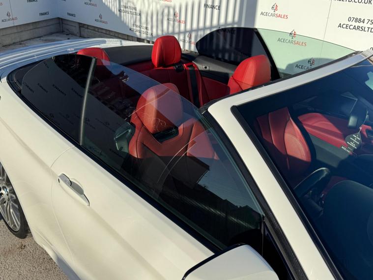 FINANCE & PCP AVAILABLE, COMPLEMENTARY WARRANTY INCLUDED, GOOD CONDITION, WE TAKE PART EXCHANGE! BMW 4 Series 2.0 420d M Sport Auto Euro 6 (s/s) 2dr. HPI Clear, Full Service History, 12 Months MOT Included With No Advisories, 3 Owners, 2 Keys, EURO6 ULEZ Compliant, Fuel Consumption 56.5MPG, Carbon Front Splitter, Convertible Roof, Convertible Comfort Package, Warm Air Collar, M Sport Package, M Aerodynamic Bodystyling, Cruise Control with Brake Function, Speed Limiting Function, Parking Sensors - Front And Rear, Start/Stop Function, M Sport Suspension, Servotronic Steering, Electronic Differential Lock, BMW Drive Modes ECOPro/Comfort/Sport/Sport+, Paddle Shifts, Sports Gearbox Mode With Manual Shifting Function, Brake Assist, Brake Pre-Tensioning, Brake Drying, Dynamic Traction Control, Dynamic Stability Control Plus, Dynamic Brake Control, Cornering Brake Control, Automatic Stability Control, Anti Lock Braking System, Tyre Pressure Warning System, Hill Start Assist, Electric Parking Brake, Headlights - Automatic Activation, Xenon Headlights, Daytime Running Lights, Dynamic Brake Lights, LED Tailights, Interior Switchable Ambient Lighting, Front Heated Seats, Heated Steering Wheel, Automatic Dual Zone Climate Control, Air Conditioning, Front And Rear Screen Demister, Colour Screen Media Interface - BMW Professional, Vehicle Status, On Board Trip Computer, BMW Connected Drive, Navigation, Traffic Information, Bluetooth, Radio, DAB, AUX, CD, USB, Telephone Connection, Voice Control, Multifunctional Steering Wheel, Full Leather Seats In Red, Gloss Black/Aluminium Design Interior Trims, BMW M Sport Design Door Sills, Privacy Glass, 19inch Alloy Wheels. ALL VEHICLES ARE FULLY INSPECTED PRIOR TO SALE. Wish to make this purchase hassle free with ease? Feel free to enquire about our competitive Financial packages. We can assist you in securing finance for your New car with ease- regardless of your credit status/history. We include a COMPLEMENTARY WARRANTY on all our vehicles. Be our next happy customer today! dealer's website