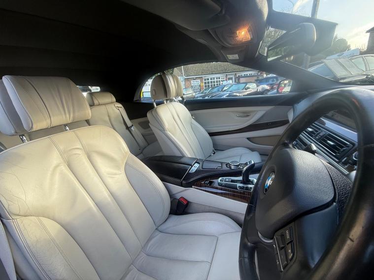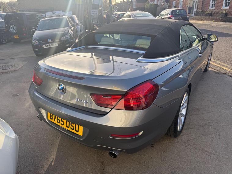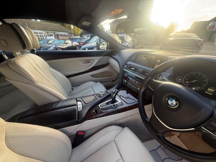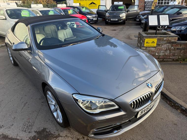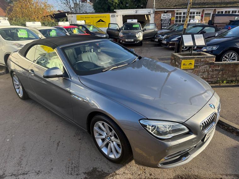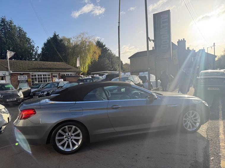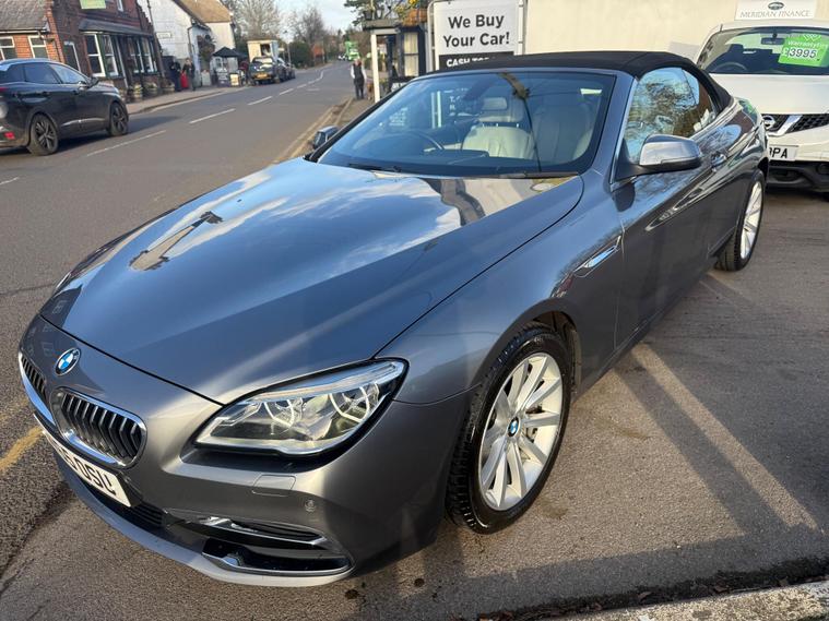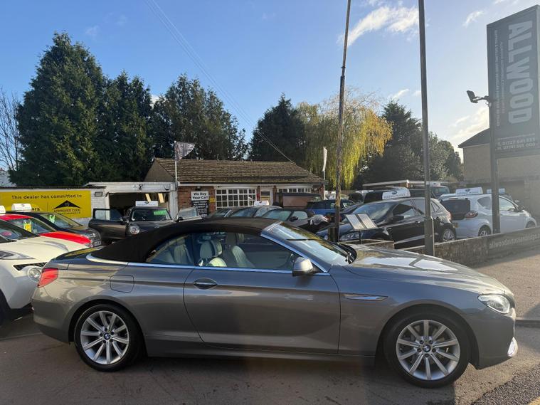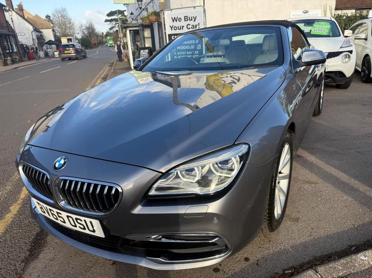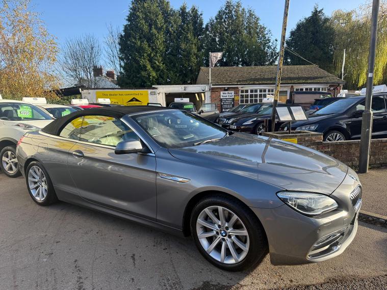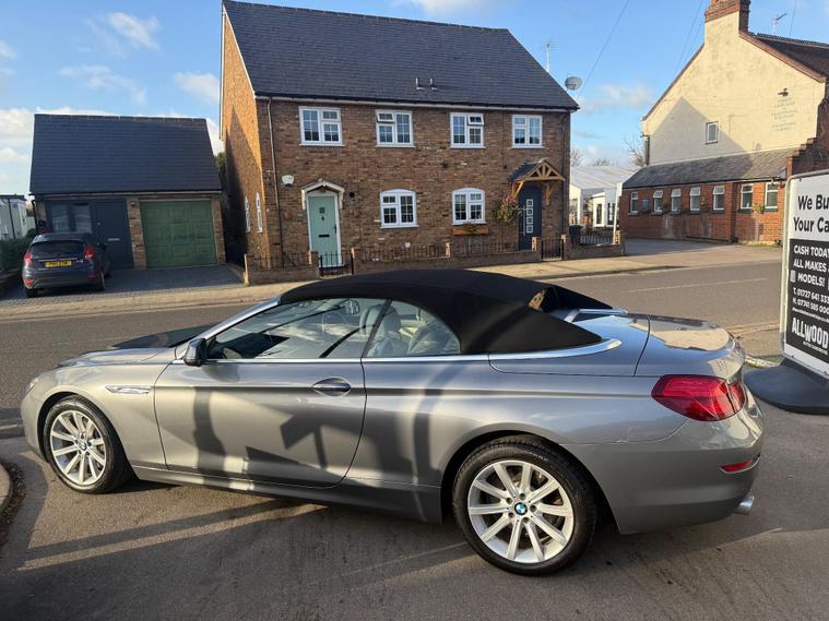 Allwood of Sandridge are pleased to be able to bring to market this simply stunning driving BMW 6 Series 3.0 640i SE Auto. Offering exceptional value for money for this fabulous 4 seater convertible sports GT. With an excellent service record accompanying the car all stored within the cars iDrive system completed by BMW main dealer and BMW approved specialist with 7 service visits recorded. Currently having covered 104, 000 miles. The vehicle has also just gone through a new MOT for yet further peace of mind and runs right through till 14 October 2026. Fully HPi clear free from accidents and finance with verification of the cars miles and owners. 2 keys are also equipped with the car. Running on Bridgestone tyres on all 4 corners. A wonderful level of specification with this model of which highlights include the head up display system, wide screen entertainment with reverse camera and front parting aids, full navigation, lovely beige leather interior with heated electric 4 way lumbar seats, heated steering wheel, full Dakota Ivory leather with extended dash board leather, internet enabled, LED lights with High Beam assist and much much more. Need to be driven to appreciate how well this car drives.We offer our clients full dealership facilities , part exchange valuations with up to the minute market pricing. FCA regulated with access to some of the best funding options in the market (subject to status and vehicle choice). Our Staff are fully SAF approved. A portfolio of extended warranty options are on offer to suit your needs. Looking for a 6 Series with wonderful spec and great colour combination with full main dealer or approved BMW history new MOT? Our dealerships are fully AA Approved via trading standards and all vehicles come with free AA breakdown cover. We operate via appointments for viewings and test drives in order to give you the best possible service simply contact the friendly team today on 01727432301 or what's app and text services on 01727432301.