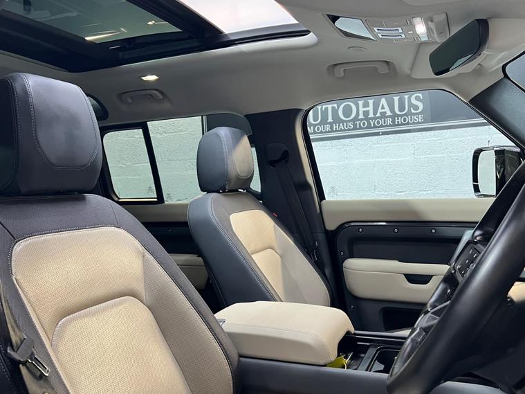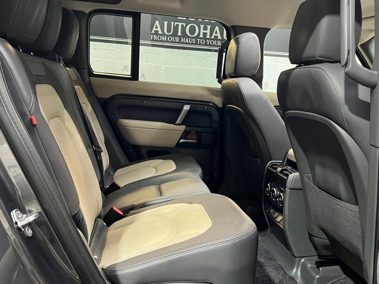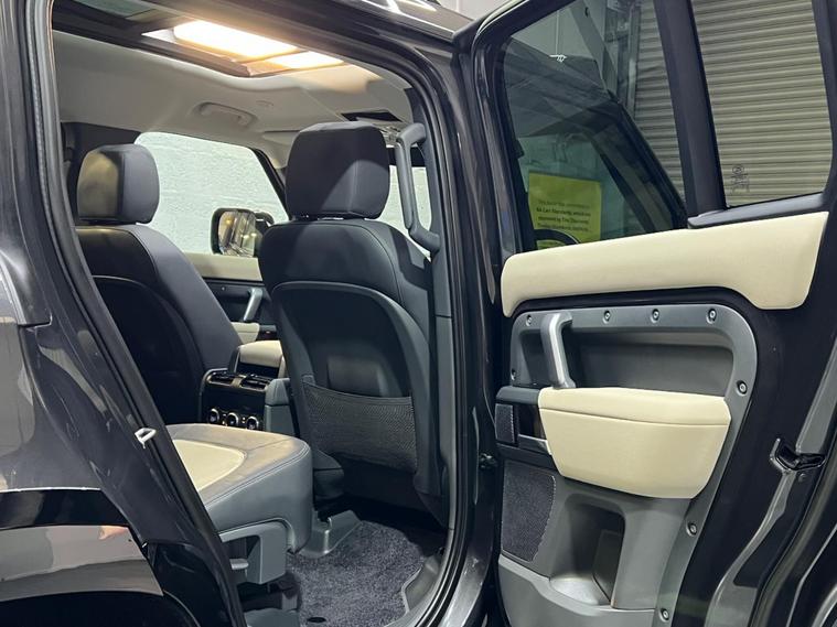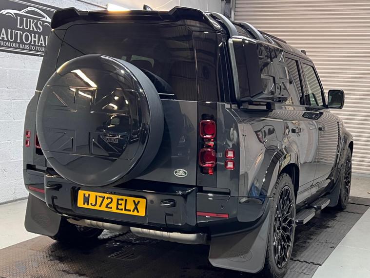 With a full dealership service history and MOT valid until August 2026, this 2022 Land Rover Defender 110 D250 X Dynamic SE offers excellent provenance. This four-wheel-drive model is powered by a 3.0-litre diesel engine and meets Euro 6 emissions standards. It boasts a substantial towing weight of 3500 kg and comes with a 6-month warranty for your peace of mind.This example further stands out thanks to its stylish body kit, enhancing its road presence with a more aggressive and premium look. It also features a 7-seat configuration, making it an ideal choice for larger families or those who need the flexibility of extra passenger capacity.Notable features include a 3D Surround Camera system with parking assistance and a 360-degree camera, perfect for navigating tight spaces and assisting with towing. Inside, you will find 12-way heated electric memory front seats for ultimate comfort, premium LED headlights with signature daytime running lights, and seamless integration with Android Auto.This Defender 110 also impresses with strong performance, accelerating from 0 to 60 mph in just 7.9 seconds. The large boot space ensures you have plenty of room for all your gear, making it suitable for both everyday use and adventurous trips. Furthermore, its low insurance group rating helps keep running costs competitive compared to similar vehicles.With a clear vehicle history check and a recent service completed at 39, 707 miles on 28 August 2025, this Defender 110—now equipped with a body kit and 7 seats—is fully prepared for its next owner..