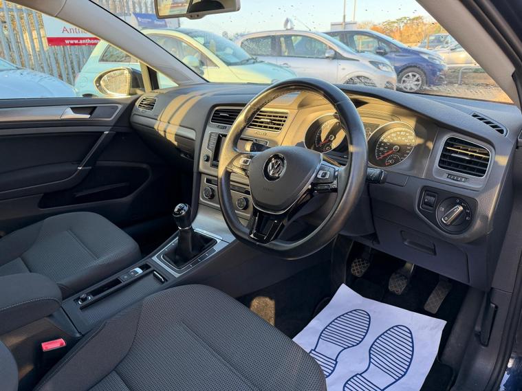 Volkswagen Golf 1.6 TDI BlueMotion Tech SE Euro 5 (s/s) 5dr in Blue with 98k miles from new. Comes with a full service history as follows: 7k, 17k, 26k, 36k, 48k, 54k, 65k, 70k, 74k, 77k, 81k, 90k andlast serviced @ 93, 888 miles on 21th October 2025. Cambelt Replaced. £20 road tax and excellent fuel economy. Spec includes: 6 Speed Manuel gearbox, Clean Cloth Interior, Climate Control, Colour Touch Screen, DAB, Bluetooth Audio & Telephone , USB, AUX port, 4 x electric windows, Alarm, immobiliser, Driver information centre, Isofix, alarm, Leather-Covered Steering Wheel, trip computer, third brake light, traction control, remote central locking and more . This is a pet free and non smoker car. Low rate finance available, All vehicles come with a pre-delivery inspection. 12 AA Breakdown Cover included. 3 months Warranty included plus Extended AA Warranties Available for 1, 2 & 3 years. All Major Cards Accepted. Part Exchange Welcome. Call today to view and drive!.