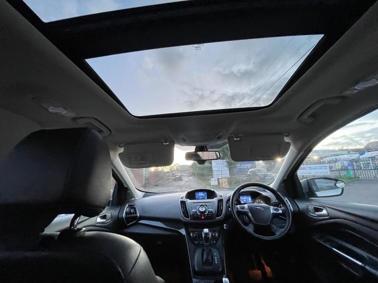 This 2014 Ford Kuga TDCi Titanium X offers a superb blend of style and practicality, making it an excellent choice for those seeking a capable and well equipped SUV. Powered by a robust 2.0 litre diesel engine and featuring a Four Wheel Drive system, this Kuga is ready for a variety of driving conditions. The Titanium X trim level ensures a premium experience, enhanced by features such as Bi Xenon headlights for superior visibility and automatic headlights for convenience. Inside, you will appreciate the dual zone electronic automatic air conditioning, allowing both driver and passenger to set their preferred temperatures independently.The inclusion of a panorama roof, complete with a fixed panoramic sunroof, adds a sense of spaciousness and light to the cabin, creating a more enjoyable environment for all occupants. For seamless connectivity, the vehicle is equipped with Bluetooth handsfree and voice control, allowing you to manage calls and music without taking your hands off the wheel. These thoughtful features, combined with the advanced technology and comfortable interior, position this Ford Kuga TDCi Titanium X as a superior option within its class, offering a refined and versatile driving experience..