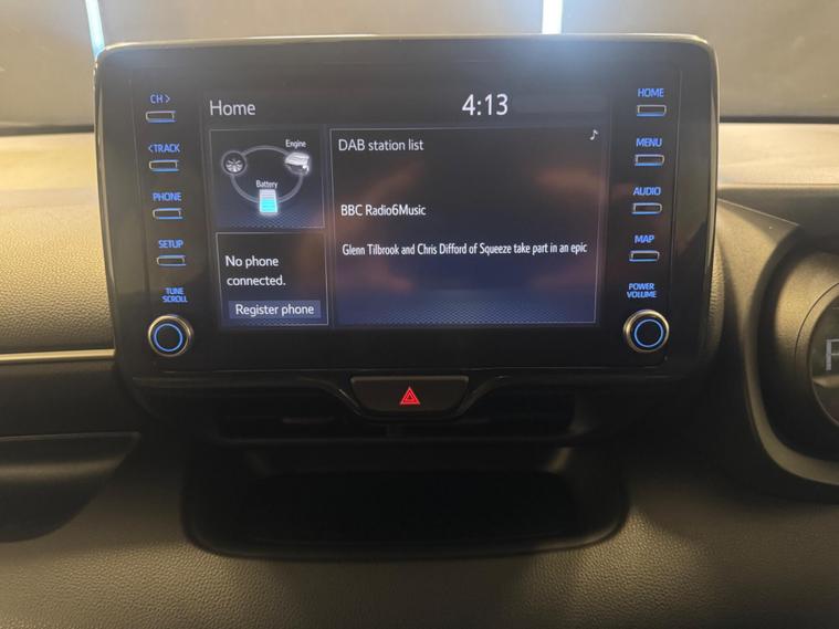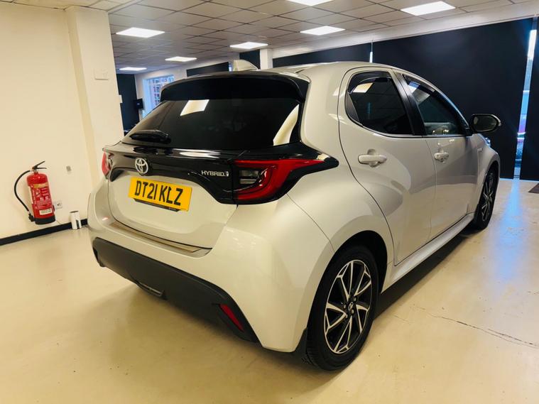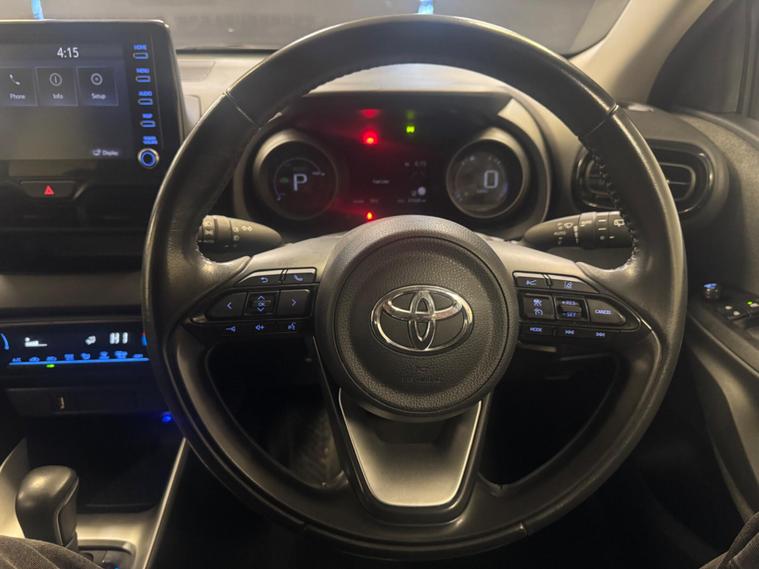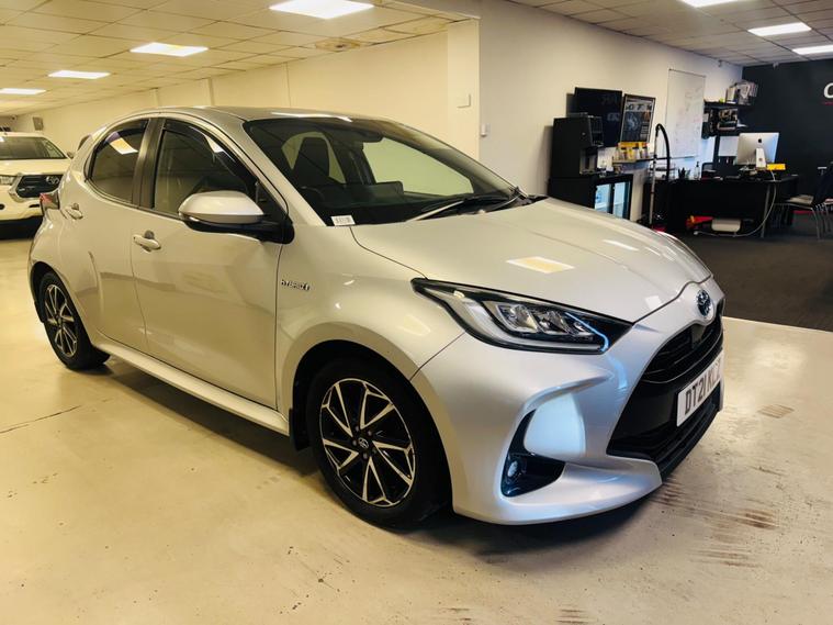 Discover this 2021 Toyota Yaris VVT-h Design, a smart choice for those seeking efficiency and modern technology. This Euro 6 compliant model boasts a 1.5L Petrol Hybrid engine, offering an impressive fuel economy of up to 69 mpg. Inside, you'll find a comfortable and connected cabin featuring automatic air conditioning for your comfort, a reversing camera for easier parking, and Toyota Safety Sense 2, which includes adaptive cruise control to make journeys more relaxed. Smartphone integration with Apple CarPlay and Android Auto, along with Bluetooth connectivity, ensures you stay connected on the go.The low CO2 emissions of this Yaris highlight its environmental consideration, making it a more responsible option compared to many other vehicles in its class. The combination of its hybrid powertrain and advanced safety features positions this Toyota Yaris Design as a practical and forward thinking vehicle, designed to provide an economical and enjoyable driving experience..