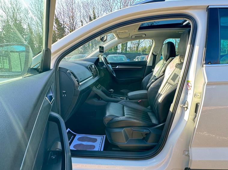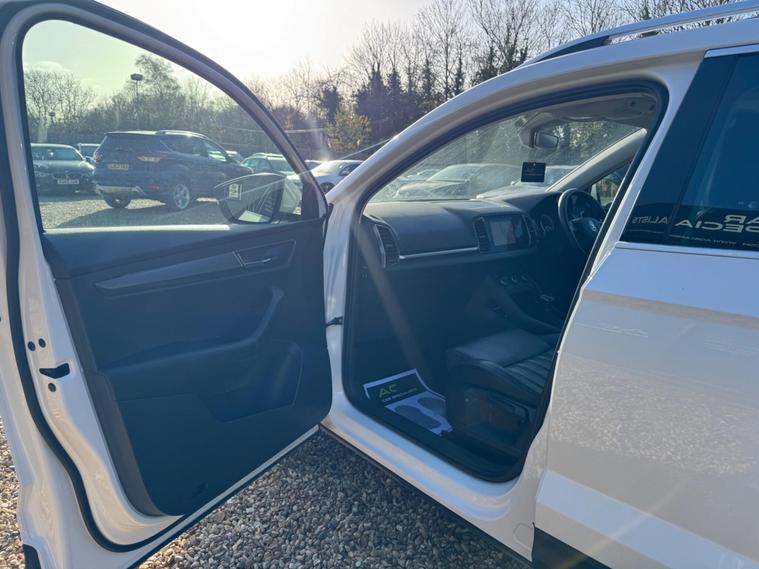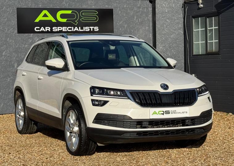 Here at AQS Car Specialist we take pride in being one of the few highly rated dealers for our customer service from Autotrader working closely together so we can go the extra mile to make sure you are getting the best service out there. All vehicles undergo a full visual and Mechanical health inspection, driven and tested. All essential work carried out with no expense spared. We offer an extended nation wide warranty with the option to extend up to 36 months, giving our customers full peace of mind and security when purchasing a car from AQS car specialists.Any inspection welcome, Test drive welcome, Part exchanges welcome. All dealer facilities available on site. Here at AQS Car Specialist we are delighted to offer this well maintained example of a Skoda Karoq 1.5 TSi Edition DSG. Finished in White with a contrasting full Black leather interior alongside 19 inch alloys. Recently serviced and comes with a full dealership history as well as a fresh 12 month MOT. In fantastic condition both inside and out, drives great and needs for nothing. These Karoqs are known for their sleek design, comfortable cabin, being very spacious and reliable. This particular example benefits from being fitted with some great features which include, Dual Zone Climate Controlled Air Conditioning, Cruise Control, Touch Screen Sat Nav with Gesture Control, Bluetooth Connectivity, DAB Radio, Auto Headlights with Cornering Lights, Rain Assistant, Opening Panoramic Glass Sunroof, Reverse Camera, Front and Rear Parking Sensors with Visual Guide, Electrically Operated Boot, Lane Assist, Electrically Adjustable Drivers Seats with Memory, Heated Front Seats, Blind Spot Monitoring System, Keyless Entry and Go, Traffic Sign Recognition System, Switchable Driver Modes, Hill Hold Assist, AutoDimming Side Mirrors with Memory Function and the super useful Split Fold Rear Bench amongst all the usual Skoda refinements you expect..