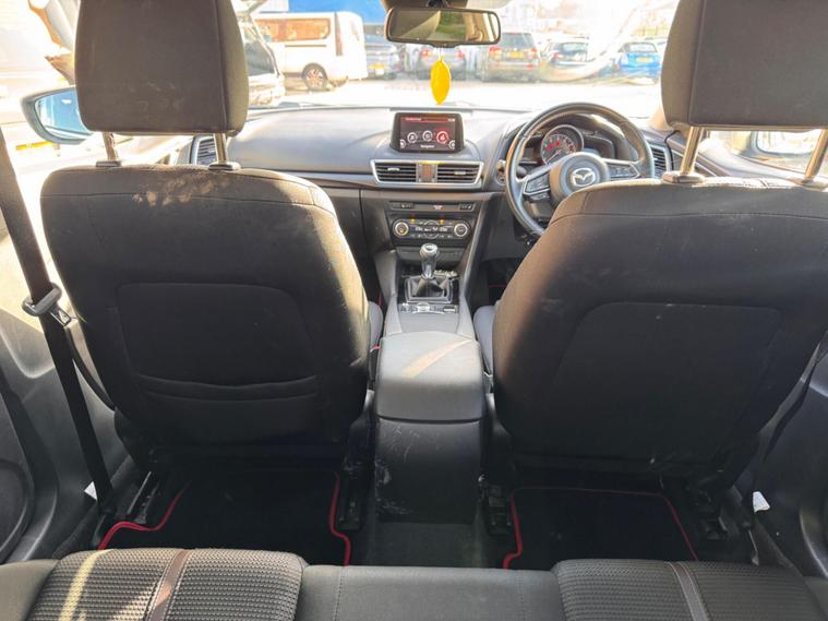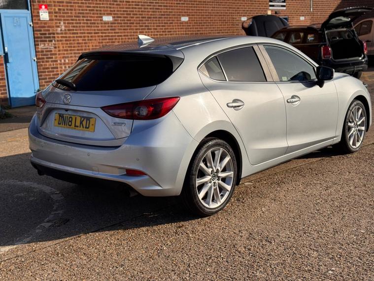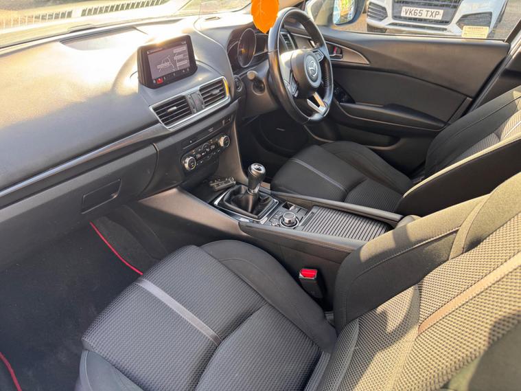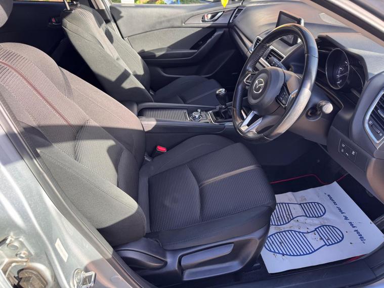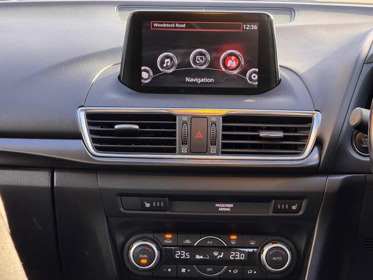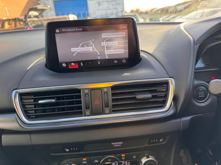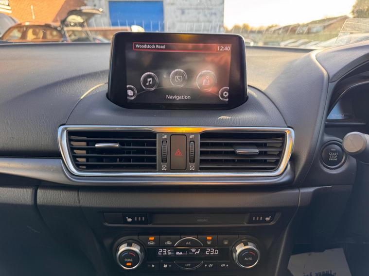 This 2018 Mazda3 SKYACTIV-G Sport Nav is a clear vehicle history check, offering peace of mind alongside its impressive features. Powered by a 2.0L petrol engine and meeting Euro 6 emissions standards, this Sport Nav model combines efficiency with performance. Inside, you'll find a comfortable and convenient cabin featuring heated front seats with three stage settings and dual zone climate control air conditioning. The advanced lighting system includes LED headlights with auto levelling and dusk sensing, ensuring optimal visibility in all conditions. For your entertainment, a premium Bose Centrepoint surround sound system with nine speakers is integrated with the AM-FM-DAB radio and single CD player.This Mazda3 stands out with a remarkable fuel economy of 55 mpg, indicating it is more economical than many similar vehicles. Its acceleration from 0-62mph in just 8.9 seconds demonstrates a responsive driving experience, outperforming other cars in its class. Furthermore, the low insurance group rating suggests that running costs will be lower compared to comparable models. The generous boot space also provides practicality for everyday use and longer journeys, making this Mazda3 a well rounded choice..