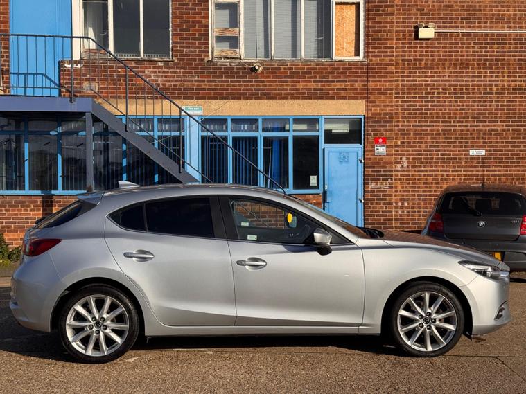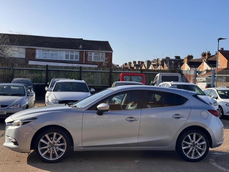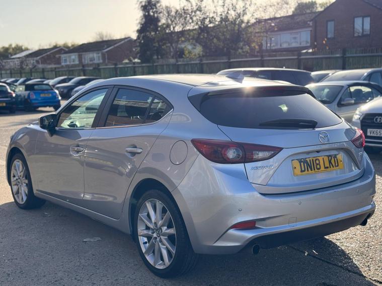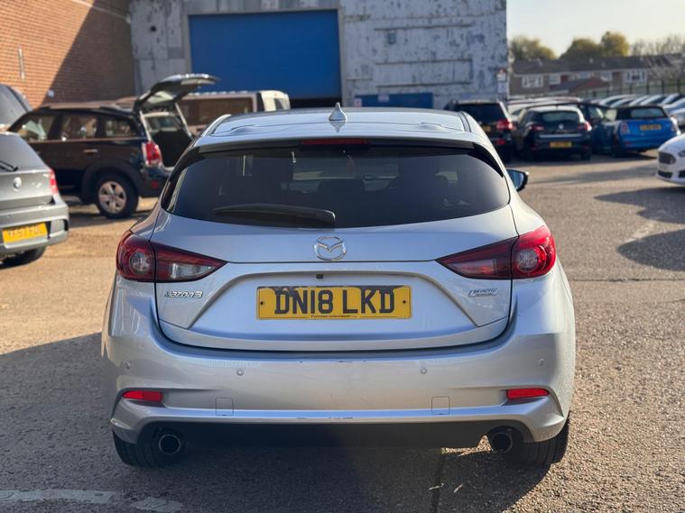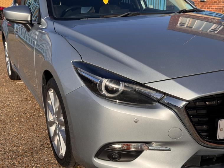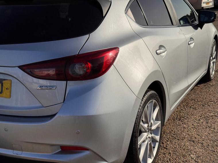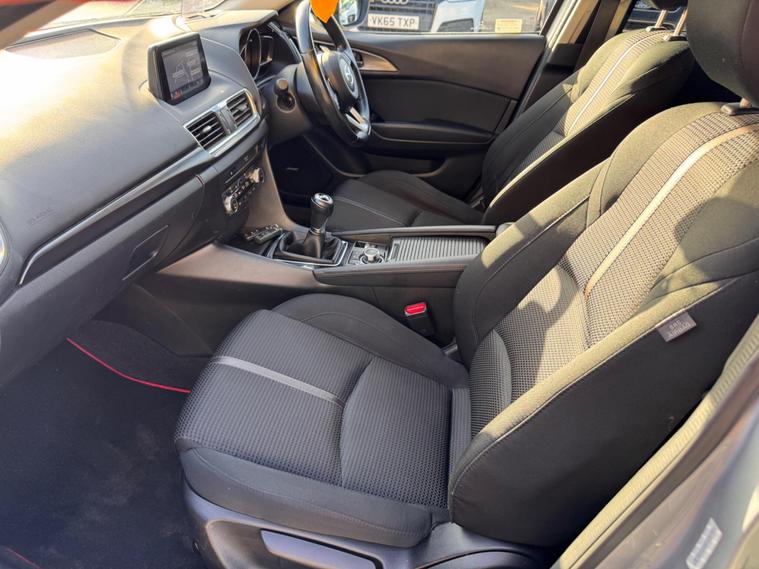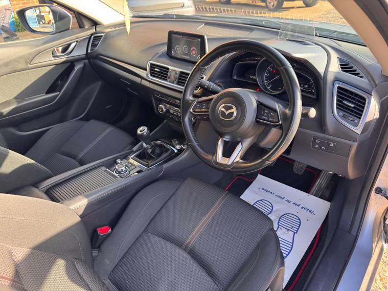 This 2018 Mazda3 SKYACTIV-G Sport Nav is a clear vehicle history check, offering peace of mind alongside its impressive features. Powered by a 2.0L petrol engine and meeting Euro 6 emissions standards, this Sport Nav model combines efficiency with performance. Inside, you'll find a comfortable and convenient cabin featuring heated front seats with three stage settings and dual zone climate control air conditioning. The advanced lighting system includes LED headlights with auto levelling and dusk sensing, ensuring optimal visibility in all conditions. For your entertainment, a premium Bose Centrepoint surround sound system with nine speakers is integrated with the AM-FM-DAB radio and single CD player.This Mazda3 stands out with a remarkable fuel economy of 55 mpg, indicating it is more economical than many similar vehicles. Its acceleration from 0-62mph in just 8.9 seconds demonstrates a responsive driving experience, outperforming other cars in its class. Furthermore, the low insurance group rating suggests that running costs will be lower compared to comparable models. The generous boot space also provides practicality for everyday use and longer journeys, making this Mazda3 a well rounded choice..