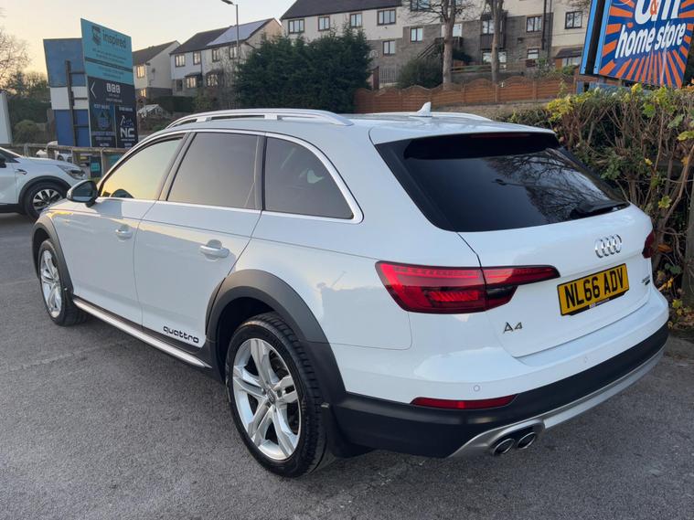 WE ARE PLEASED TO OFFER THIS HIGHLY DESIRABLE HIGH SPECIFICATION HIGHLY MAINTAINED RARE LOW MILEAGE LOW OWNERSHIP FOUR WHEEL DRIVE AUDI A4 ALLROAD 2.0 TDI SPORT S TRONIC QUATTRO EURO SIX FIVE DOOR ESTATE + FINISHED IN THE BEST COLOUR OF GLACIER WHITE METALLIC PAINTWORK AND IS COMPLEMENTED WITH A FULL BLACK MILANO LEATHER UPHOLSTERY + ONLY 61, 084 MILES HAS BEEN COVERED IN TOTAL BY TWO OWNERS + LAST OWNER SINCE MARCH 2018 AND IS BACKED WITH AN EXCELLENT SERVICE HISTORY WHICH IS COMPRISED OF EIGHT SERVICES + JUST BEEN SERVICED WHICH INCLUDED THE CAMBELT KIT AND WATER PUMP BEING CHANGED PLUS THE S-TRONIC GEARBOX OIL BEING CHANGED + THE MOT IS TILL THE 14TH OF NOVEMBER 2026 + OUTSTANDING CONDITION THROUGHOUT AND DRIVES SUEPRB + 190 BHP + FULL SPORT SPECIFICATION WHICH INCLUDES SATELLITE NAVIGATION / DAB TUNER / BLUETOOTH HANDS FREE PHONE PACK / HEATED FRONT SEATS / PARKING DISTANCE CONTROL FRONT AND REAR / 18'' MULTI SPOKE ALLOY WHEELS / CRUISE CONTROL / MULTI FUNCTION STEERING WHEEL / MEDIA PACK / FULL ELECTRIC PACK / TINTED GLASS PLUS MUCH MORE + HANDBOOK PACK + DIGITAL PRINTOUT SERVICE HISTORY + 2 X KEYS + ANY TRIAL OR INSPECTION IS WELCOMED + HPI CLEAR WITH CERTIFICATE + SIX MONTHS NATIONWIDE WARRANTY IS INCLUDED + AUDI BUILD QUALITY + VIEWING IS ESSENTIAL TO APPRECIATE THIS TRULY CHERISHED EXAMPLE AND MUST NOT BE CONFUSED WITH LESSER EXAMPLES AVAILABLE. We have been established in Baildon for over 20 years. All our vehicles are fully inspected, prepared and valeted. We are finance specialists. Part exchange is welcome. All major credit and debits accepted. Open 7 days. Our postcode is BD177EX..