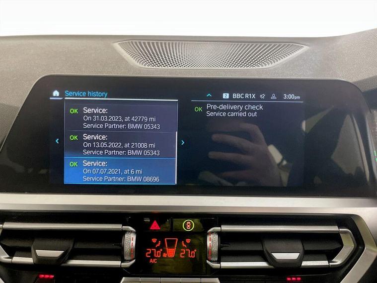 This 2021 BMW 3 Series 330e M Sport is a superb example, having been owned by just one individual from new. This four wheel drive plug in hybrid model boasts a 2.0 litre petrol engine and meets Euro 6 emissions standards. It comes with service history, offering peace of mind. The M Sport trim enhances its sporty appeal, and it benefits from a Technology Package which includes a Head Up Display, providing key information directly in your line of sight. For convenience and connectivity, it features Bluetooth Hands Free with USB Audio Interface, allowing for seamless phone integration and audio streaming. Experience the impressive performance of this 330e M Sport, capable of accelerating from 0 to 62 miles per hour in just 5.9 seconds. This quick acceleration, combined with its plug in hybrid technology, sets it apart from many other vehicles in its class. The car is also equipped with seat heating for the driver and front passenger, ensuring comfort in all conditions. Parking is made effortless thanks to the Parking Assistant, which includes front and rear sensors, as well as a rear camera. The PDC Park Distance Control further aids manoeuvrability by providing audible and visual warnings of nearby obstacles.For peace of mind this vehicle has only had 1 registered owner, comes with service history and has completed a multi point AA inspection.Vehicle specification can be found below. From time to time vehicles have manufacturer recalls notified. Please read our recall policy on our website for further information. This vehicle comes with an AVILOO Battery Health Certificate - the global standard for EV battery testing. Full independent analysis confirms excellent battery condition with detailed State of Health assessment, cell-level checks, and accurate range data. Certificate included with purchase for your complete peace of mind and future resale value..